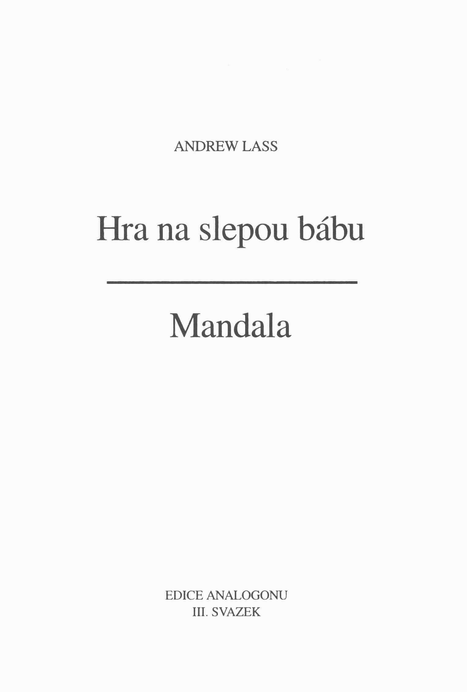 1. Title informationHra na slepou bábu ; Mandala / Andrew Lass ; [přebal navrhl a graficky upravil Martin Stejskal ; frontispice Andrew Lass]