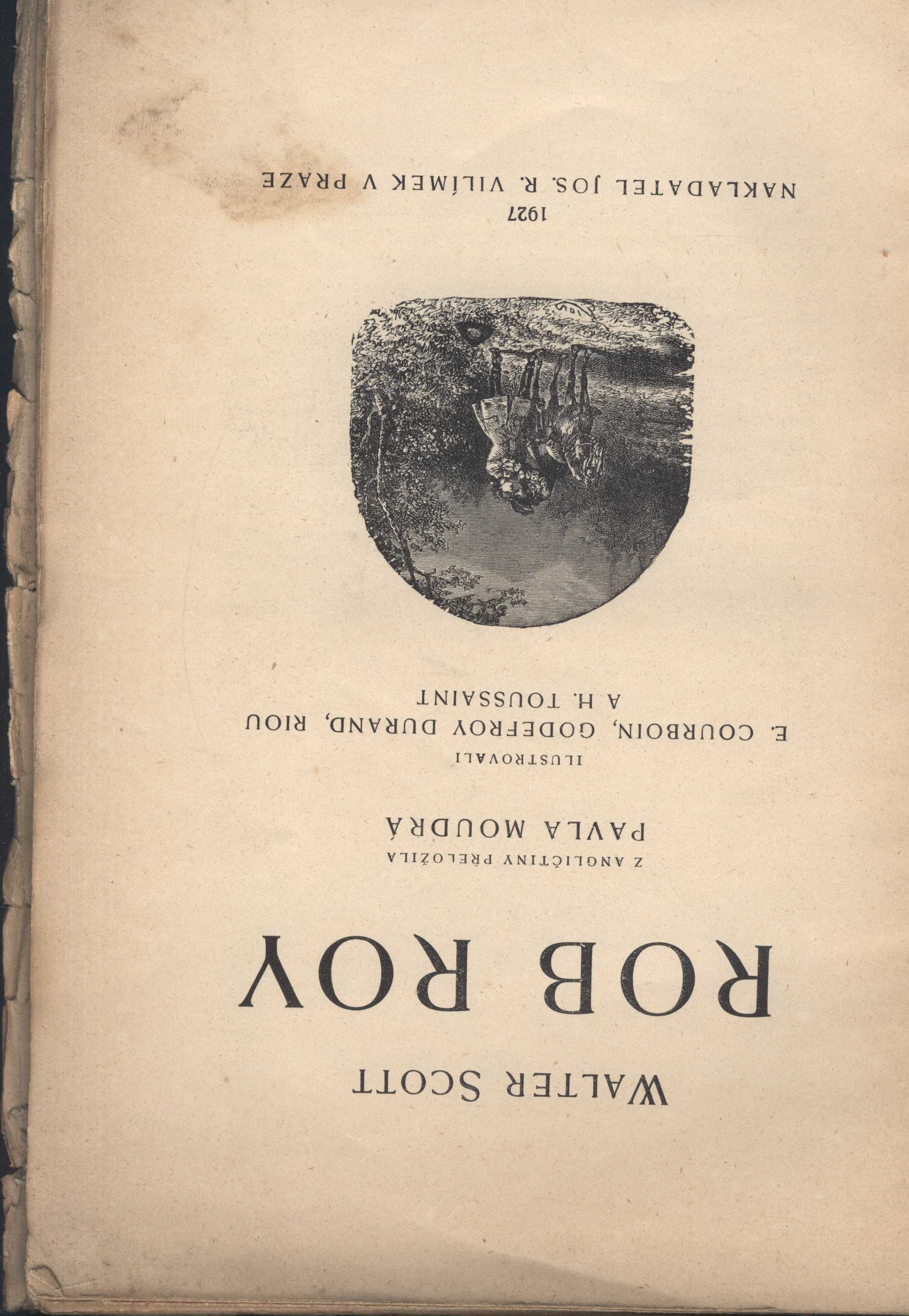 Title information Rob Roy / Walter Scott ; z angličtiny přeložila Pavla Moudrá ; ilustrovali E. Courboin, Godefroy Durand, Riou a H. Toussaint Personal name Scott, Walter, Sir, 1771-1832 (Author) Další autoři Moudrá, Pavla, 1861-1940 (Translator) Riou, Édouard, 1838-1900 (Illustrator) Courboin, Eugène, 1851-1915 (Illustrator) Durand, Godefroy, 1832-187? (Illustrator) Toussaint, Henri, 1849-1911 (Illustrator) Corporation Jos. R. Vilímek (nakladatelství) (Publisher) (Printer) Publication V Praze : Jos. R. Vilímek, 1927 Scope 481 s. : il. ISBN brož. Country Czech Republic Language Czech Language of the original English Note Černobílé ilustrace různých autorů (jedna jako frontispis).