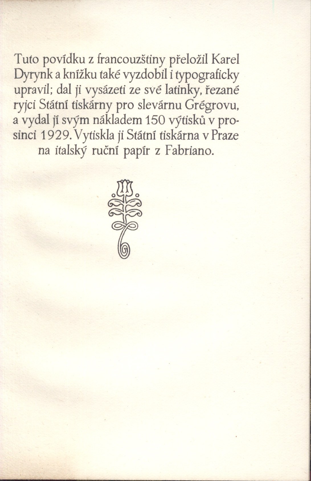 Vydáno v nákladu 150 výtisků na italském ručním papíru Fabriano.