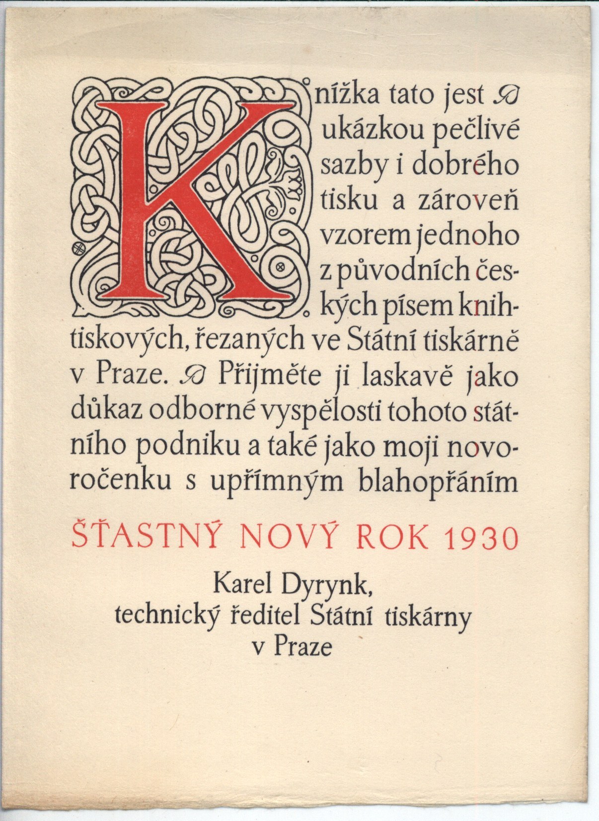Document kind monografie Keywords francouzská literatura * próza * překlad * povídka * novoroční tisk * Dyrynk K. * Státní tiskárna * výzdoba knihy * bibliofilský výtisk * bibliofilské tisky * bibliofilský tisk * bibliofilie UDC 821.133.1 * 82-3 * =030 * 82-32 * 090.1 Uživatelské pole PNP U sign. Topič osobní knihovna Topiče a Milady Blekastad. U sign. Topič 0576 (vázaný výtisk) polokožená zdobená vazba, zlacení na hřbetu, zlacená horní ořízka. - Vložená novoročenka s barevnou zdobnou iniciálou (K. Dyrynk). - Dvoubarevný titulní list s vinětkou (K. Dyrynk). - Zdobná iniciála. - Tiráž s opakující se vinětkou. - Tištěno typy Grégrova latinka na italském ručním papíru Fabriano. - Vakát. - Zdobená i zadní strana vazby. U sign. Topič 0576 zachovalá vazba i výtisk, jen novoroční list mírně zašpiněný. Rozsah: 42, [4] s., + 1 volný list novoročenky Rozměr: 14,7 cm Sáňka 3107 Signatura KaG III E 129: Původní nakladatelská vazba, zachovalý stav. Call number Track No. Location Info Topič 0576 0454/2015 Sbírka KaG III E 129 xxx/KAG Sbírka
