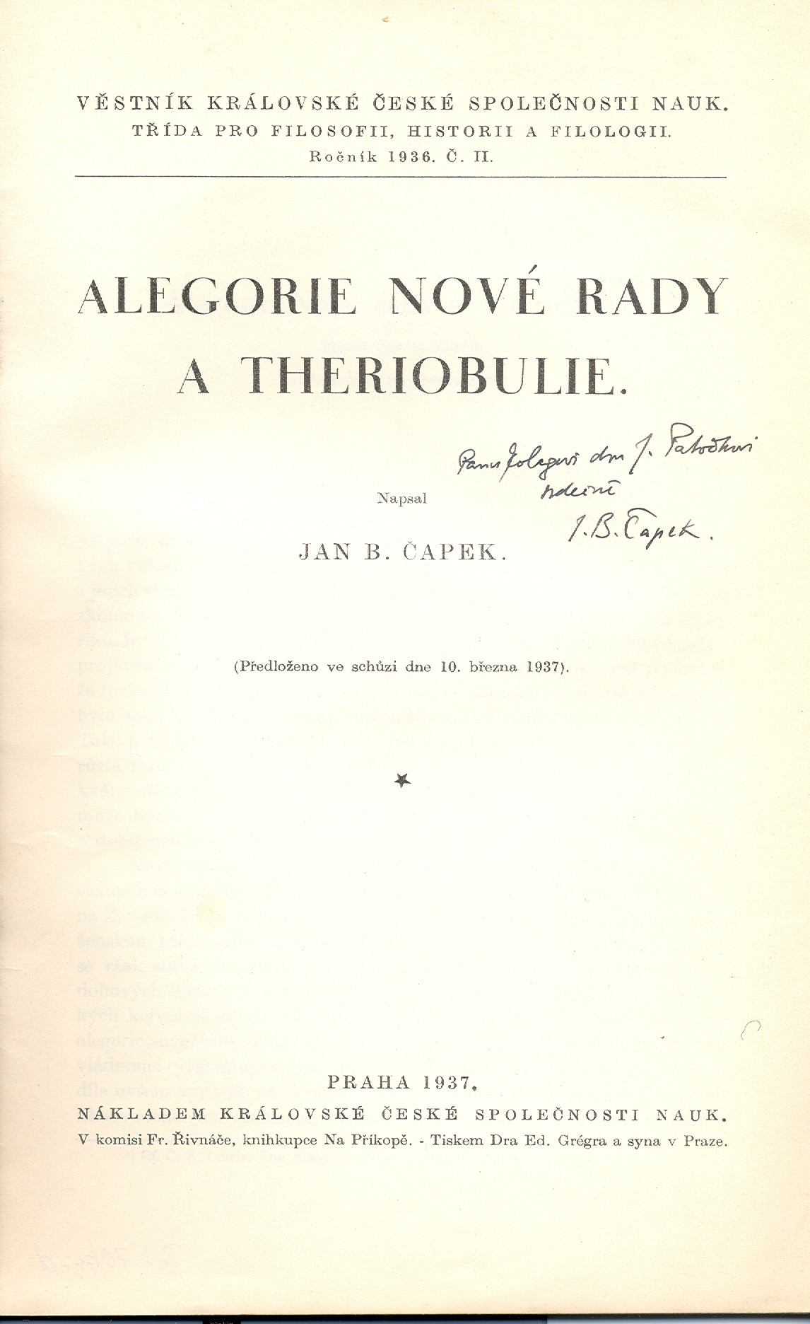Věstník Královské české společnosti nauk, Třída pro filosofii, historii a filologii (Královská česká společnost nauk)Country Czech Republic Language Czech Note Předloženo ve schůzi dne 20. března 1937. - Obsahuje bibliografické odkazy.