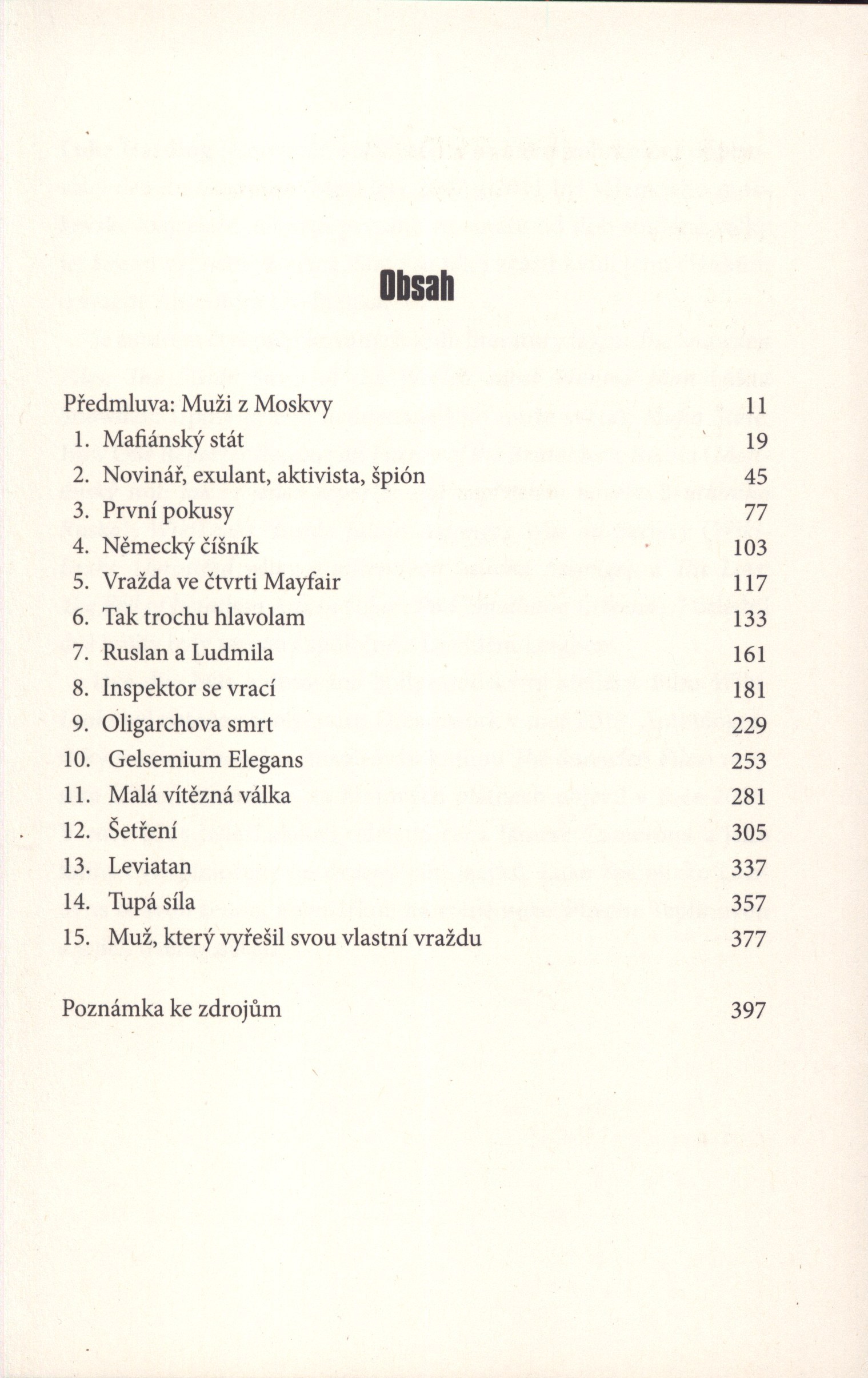 Annotation Okolnosti vraždy bývalého ruského agenta Alexandra Litviněnka a vyšetřování tohoto zločinu. Kniha renomovaného novináře a bývalého moskevského korespondenta listu Guardian Luka Hardinga jedinečným a poutavým způsobem mapuje příběh vraždy bývalého agenta FSB Alexandra Litviněnka, přičemž celou událost zasazuje do širšího kontextu vlády a politiky Vladimira Putina. Harding podává ucelený náhled do specifické společnosti agentů FSB, informátorů MI6, praní špinavých peněz, jaderných vědců, nemocničních doktorů, akademiků a londýnských policejních důstojníků, jež se stala součástí vyšetřování. Nakladatelská anotace. Kráceno. Document kind monografie Personal subjects Litvinenko, Aleksandr Val‘terovič, 1962-2006 - ruský zpravodajský důstojník, zavražděný v r. 2006 Corporate keywords Federal'naja služba bezopasnosti Rossii Chronology 2015-2016 Subject headings agenti - Rusko - 20.-21. století * disidenti - Rusko - 20.-21. století * zpravodajské služby - Rusko - 20.-21. století * státní terorismus - Rusko - 20.-21. století * politické vraždy - Rusko - 2006 * policejní vyšetřování - Velká Británie - 21. století * secret service agents - Russia - 20th-21st centuries * dissenters - Russia - 20th-21st centuries * intelligence service - Russia - 20th-21st centuries * state terrorism - Russia - 20th-21st centuries * assassinations - Russia - 2006 * police enquiry - Great Britain - 21st century Geographic keyword Rusko - politika a vláda - 21. století * Russia - politics and government - 21st century Keywords anglická literatura * překlad * Sovětský svaz * Velká Británie * důstojníci * špióni * Litviněnko A. * stol. 21. UDC 821.111 * =030 * 929 * (47) * (410.1) * (470+571) Uživatelské pole PNP U sign. C12b 17850 (vázaný výtisk) ilustrací zdobená vazba. - Titulní list. - Na rubu titulního listu nakladatelské údaje a copyright. - Obsah. - Poznámka o autorovi a částečná bibliografie. - Upoutávky na knihu. - Předmluva. - Živé záhlaví. - Černobílé reprodukce. - Vložená nečíslovaná barevná obrazová příloha. - Poznámka ke zdrojům. - Poděkování a fotografie. - Upoutávka na zadní straně vazby, nakladatelská značka. Rozsah: 399, [1]s., [8] s. barev. obr. příl. Rozměr: 21 cm Call number Track No. Location Info C12b 17850 2214/2017 Fond