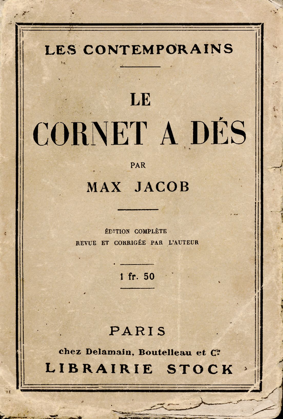Title information Le cornet a dés / par Max Jacob Personal name Jacob, Max, 1876-1944 (Author) (Author of introduction) Další autoři Gabory, Georges, 1899-1978 (Author of introduction) Picasso, Pablo, 1881-1973 (Illustrator) Corporation Librairie Stock (Paris, Francie) (Publisher) Imprimerie Saint Denis (Niort, Francie) (Printer) (Printer of plates) Publication Paris : Librairie Stock, 1923 Manufacture Niort : Imprimerie Saint Denis Scope 136 stran : ilustrace ; 15 cm ISBN (Brožováno) Edition Les Contemporains