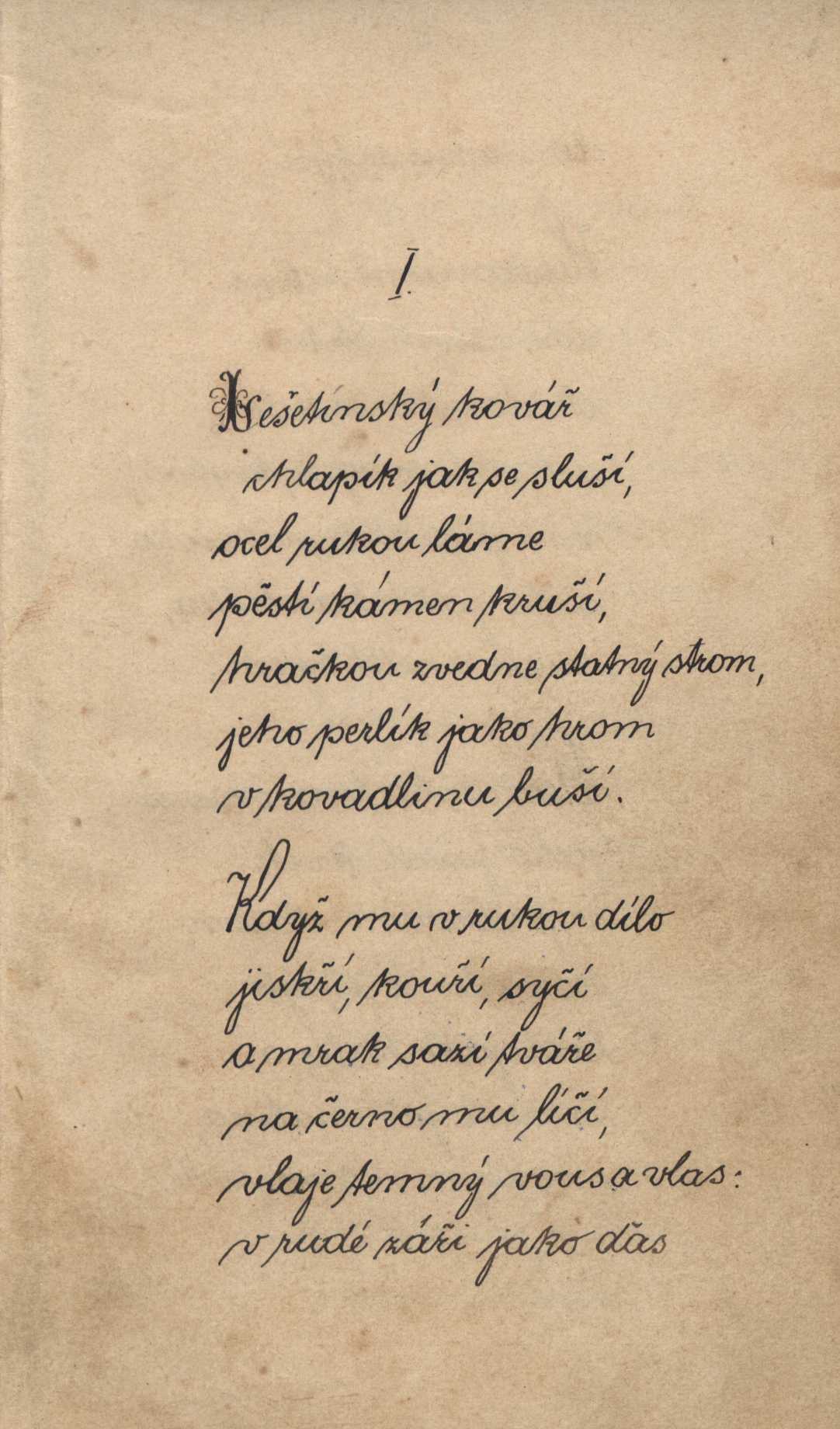 Title information Lešetinský kovář / báseň od Svatopluka Čecha Personal name Čech, Svatopluk, 1846-1908 (Author) Publication [Česko : S.n., 18--] Scope 122 s. ISBN (váz.) Country Czech Republic Language Czech Note Červená vazba se slepotiskovými ornamenty a zlatým tiskem. - Zdobené předsádky. - Ozdobné písmo na titulním listu. - Rukopisný opis černou tuší.