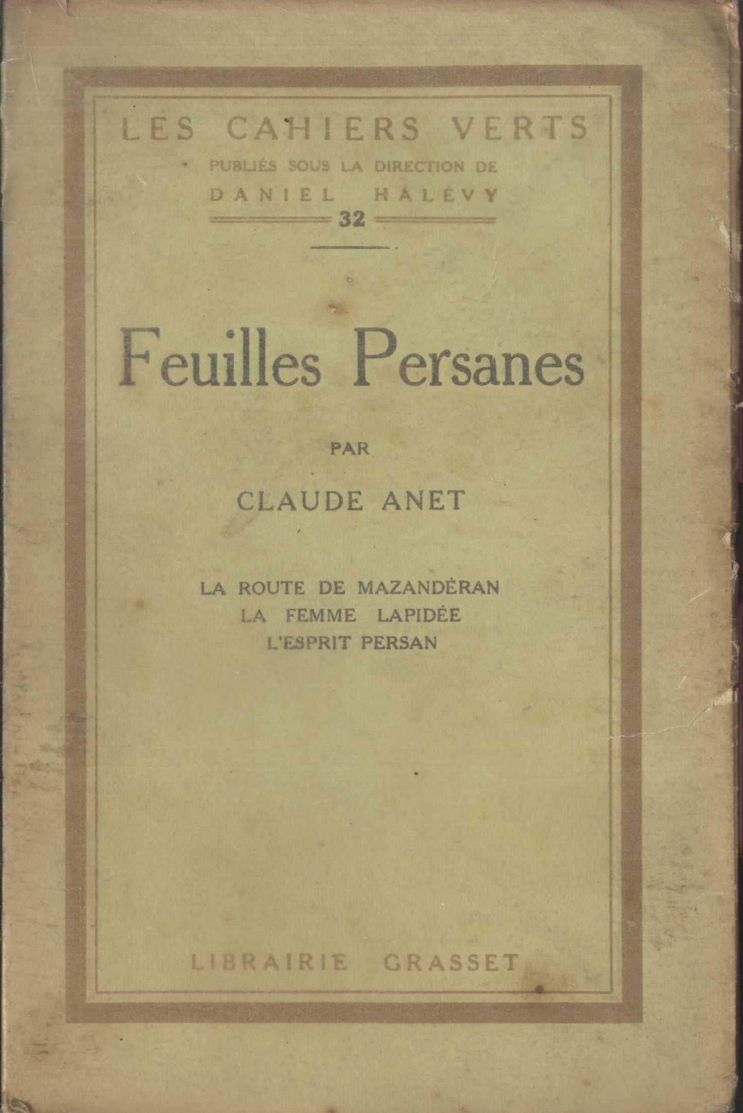 Názvové údaje Feuilles persanes / par Claude Anet Osobní jméno Anet, Claude, 1868-1931 (Autor) Další autoři Bernard Grasset (firma) (Nakladatel, vydavatel) F. Paillart (tiskárna, Abbeville, Francie) (Tiskař) Nakladatel Paris : Bernard Grasset, 1924 Výrobce F. Paillart ) Rozsah 275 s. : il. ISBN (brož.) Edice Les cahiers verts 32