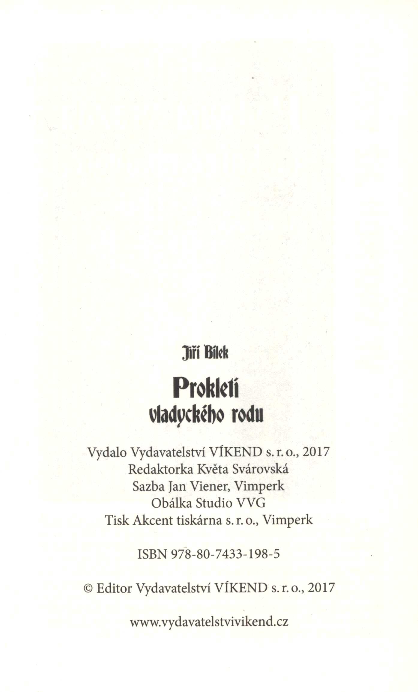 Barevná vazba s barevnou ilustrací a s dvoubarevným textem. - Nakladatelská značka na vakátě. - Nakladatelská značka na titulním listu. - Žalm. - Upoutávka na další autorovu knihu. - Anonce knihy na zadní straně vazby.