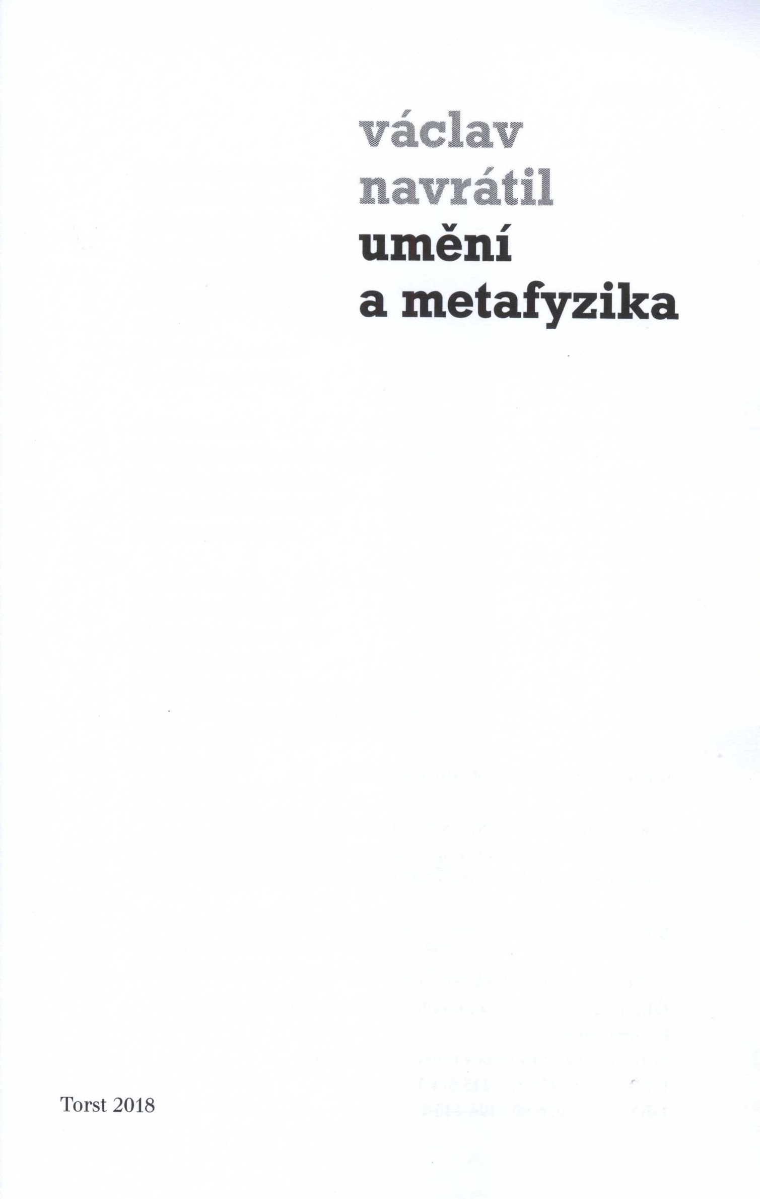 Title information Umění a metafyzika / Václav Navrátil ; uspořádal, k vydání připravil a doslov a poznámku editora napsal Kamil Nábělek; graficky upravil a sazbu zhotovil David Balihar Personal name Navrátil, Václav, 1904-1961 (Author) Další autoři Nábělek, Kamil, 1964- (Editor) (Author of afterword, colophon, etc.) (Commentator) Balihar, David, 1972- (Book designer) (Compositor) Corporation Nakladatelství Torst (Publisher) Technická univerzita v Liberci (Publisher) Tiskárna nakladatelství Karolinum (Printer) Edition statement Vydání první Publication Praha : Torst, 2018 Manufacture [Praha] : tiskárna Nakladatelství Karolinum Scope 258 stran : faksimile ; 21 cm ISBN 978-80-7215-574-3 (Torst ; brožováno) 978-80-7494-445-1 (Technická univerzita v Liberci ; brožováno) Country Czech Republic Language Czech Note Dvoubarevná zdobená obálka s dvoubarevným textem. - Na přední záložce tónované foto V. Navrátila, na zadní jeho stručná biografie a bibliografie. - Nakladatelská značka a logo univerzity na vakátě. - Dvoubarevný text na titulním listu. - Obsah. - Texty. - Černobílá fotografie s popiskem. - Doslov "Poetická metafyzika Václava Navrátila" od K. Nábělka. - Černobílá faksimile s popisky. - Poznámka editora. - Dvoubarevná zdobená zadní strana obálky.