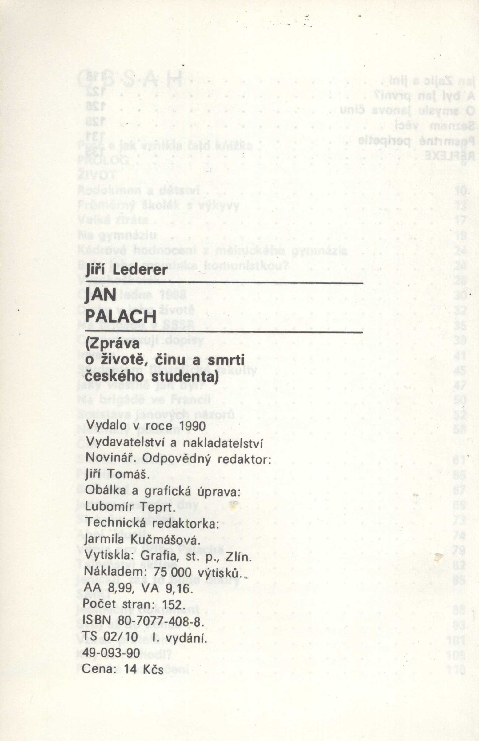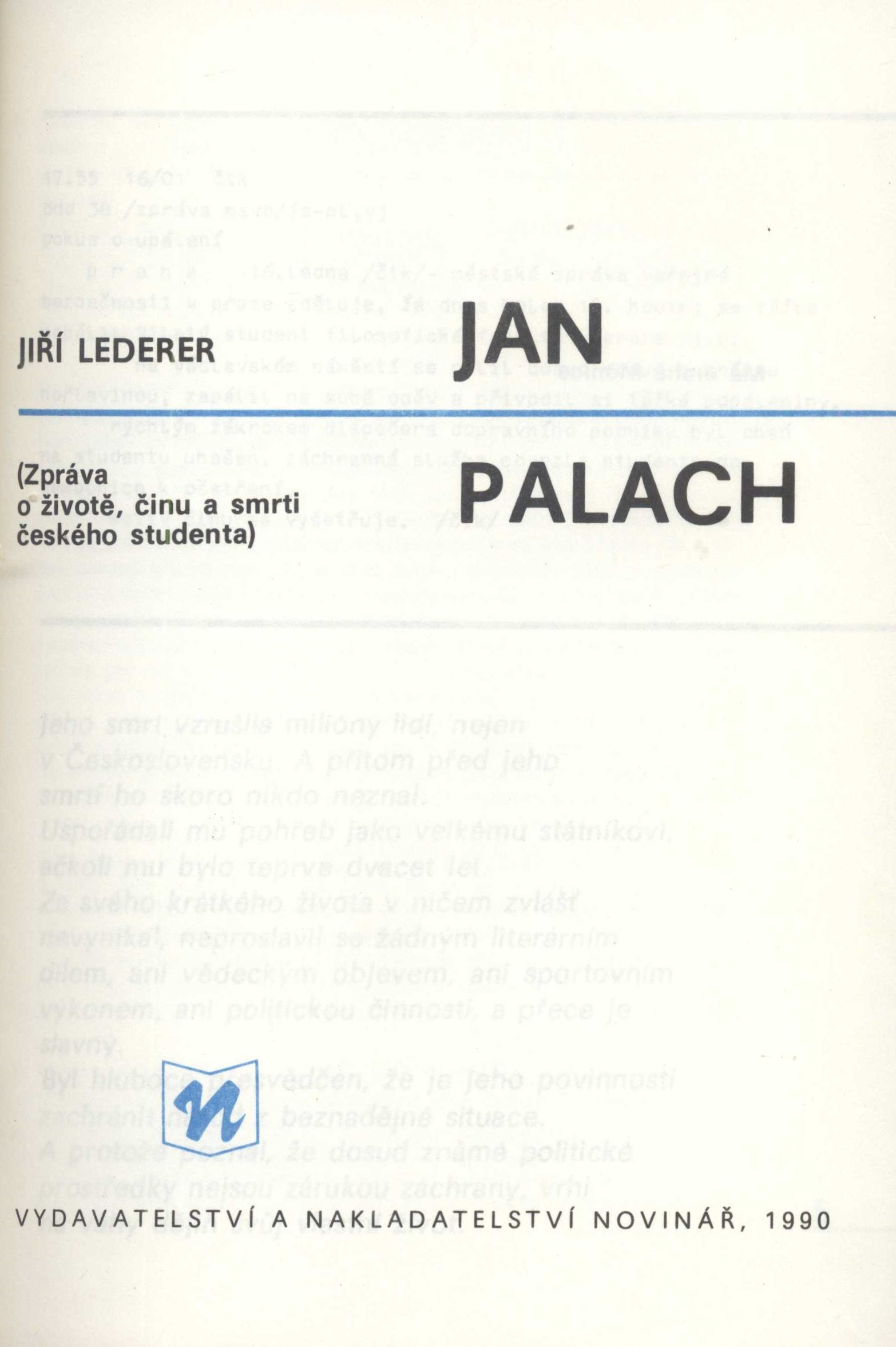 1. Title informationJan Palach : zpráva o životě, činu a smrti českého studenta / Jiří Lederer
