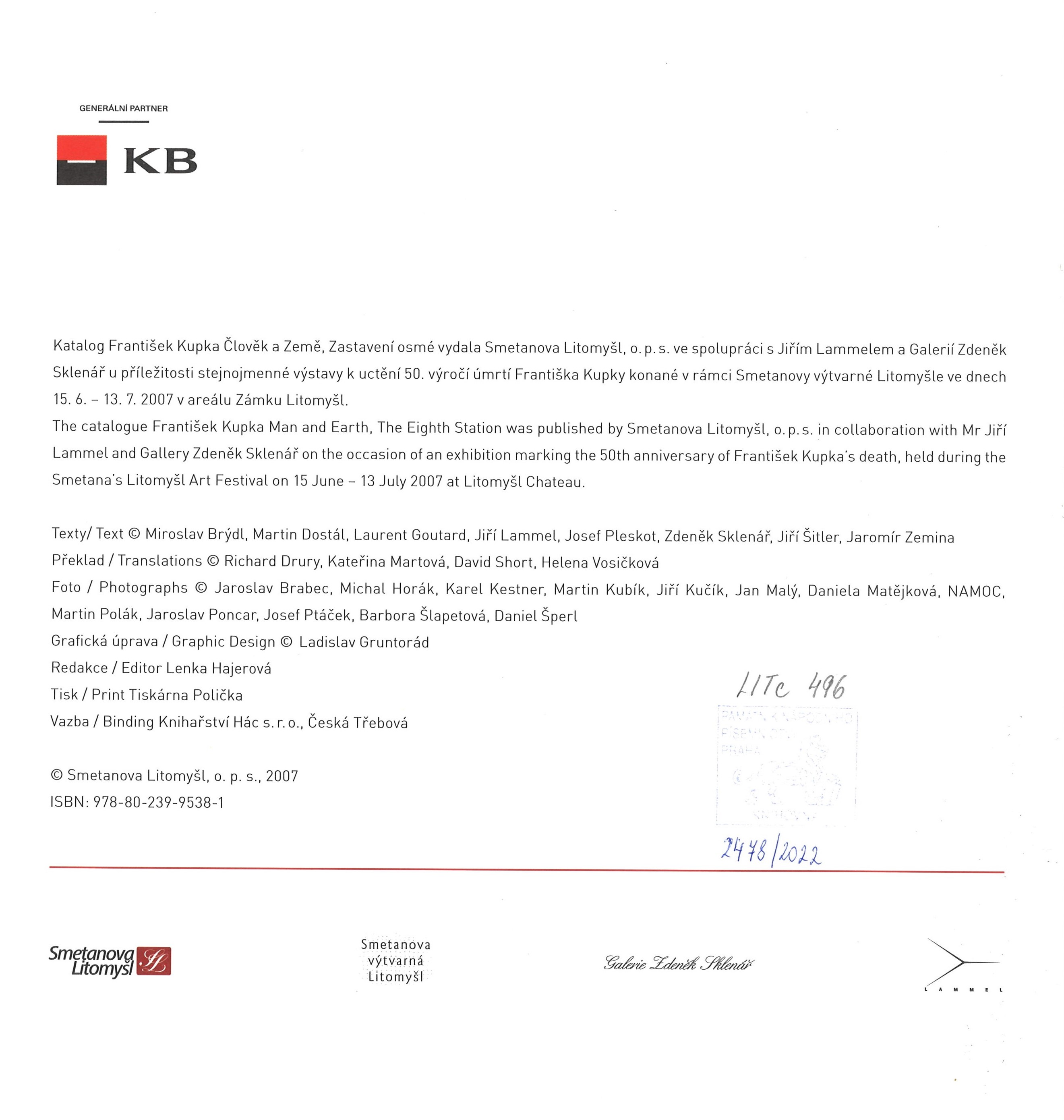 "Katalog ... vydala Smetanova Litomyšl, o.p.s. ve spolupráci s Jiřím Lammelem a Galerií Zdeněk Sklenář u příležitosti stejnojmenné výstavy k uctění 50. výročí úmrtí Františka Kupky konané v rámci Smetanovy výtvarné Litomyšle ve dnech 15.6.-13.7.2007 v areálu Zámku Litomyšl"--Tiráž.