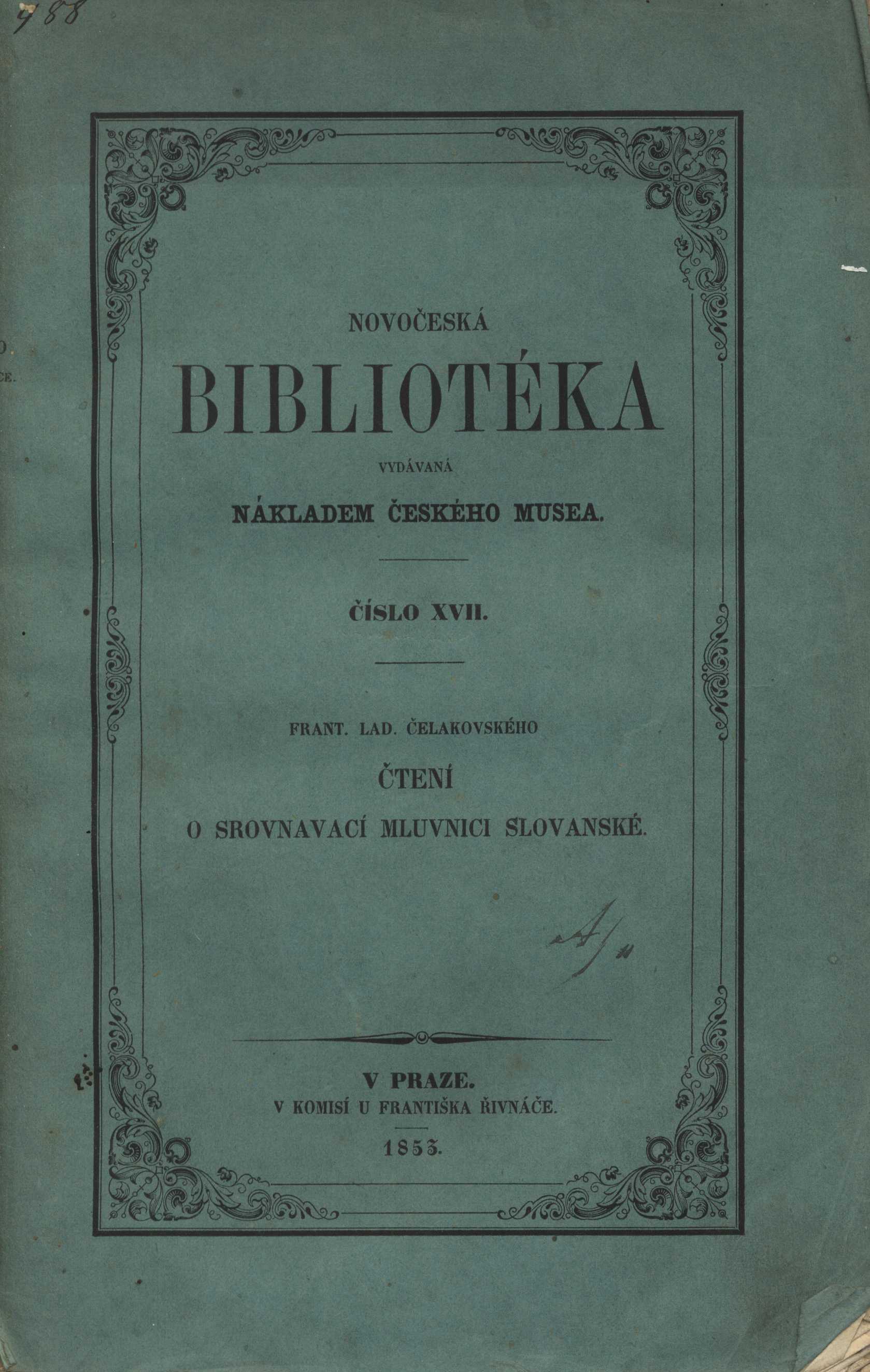 Novočeská bibliotéka, (České museum) Spisy musejní, (Museum království českého, Matice česká)Country Czech Republic Language Czech Language of the original Slavic (Other) Note Původní obálka s ornamentálním rámečkem. - Rozložený titulní list. - Předmluva P.J. Šafaříka. - Bio-bibliografická poznámka o autorovi. - Errata.