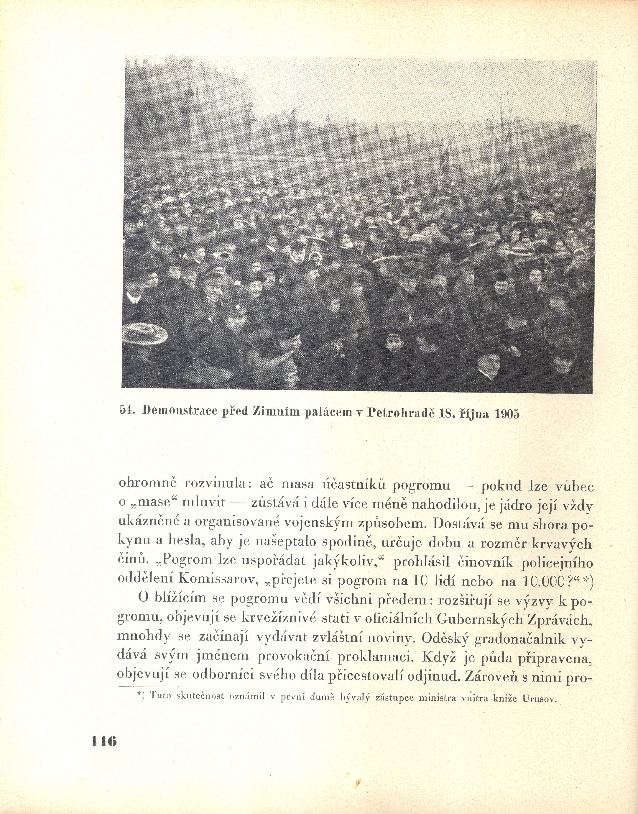 Title information Dějiny ruské revoluce : 1905-1917. Díl 1, Revoluce roku 1905 / Lev Trockij ; [autorisovaný překlad z ruštiny: Vl. Burian ; obálka K. Teige] Personal name Trockij, Lev, 1879-1940 (Author) Další autoři Teige, Karel, 1900-1951 (Binding designer) (Graphic technician) Burian, Václav, 1884-1952 (Translator) Peroutka, Ferdinand, 1895-1978 (Author of introduction) Corporation Fr. Borový (firma) (Publisher) Akciová moravská knihtiskárna Polygrafie (Printer) Další var.názvy Revoluce roku 1905 Edition statement [1. vydání] Publication Praha : Fr. Borový, 1934 Manufacture Akciová moravská knihtiskárna Polygrafie) Scope 468, [4] s. : il. ; 24,3 cm ISBN (váz.) Edition Knihy dalekých obzorů : sbírka ilustrovaných cestopisů a monografií XV.