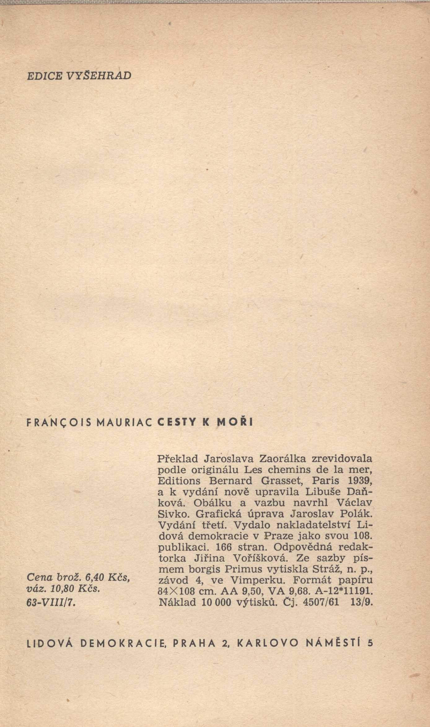 1. Title informationCesty k moři / François Mauriac ; překlad Jaroslava Zaorálka