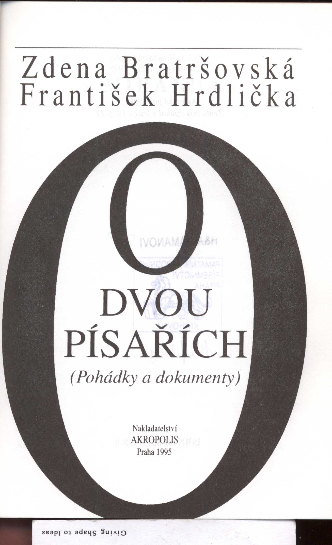 Title information O dvou písařích : pohádky a dokumenty / Zdena Bratršovská, František Hrdlička ; typografie Miroslav Pechánek Personal name Bratršovská, Zdena, 1951- (Author) Další autoři Hrdlička, František, 1937- (Author) Pechánek, Miroslav, 1945-2015 (Typographer) Corporation Akropolis - Jiří Tomáš (nakladatelství) (Publisher) Edition statement 1. vydání Publication Praha : Akropolis, 1995 Manufacture Praha : Unitisk Scope 125 stran ; 18 cm ISBN 80-85770-18-0 (brožováno) Country Czech Republic Language Czech Note Zdobená barevná obálka. - Zdobené předsádky a titulní list. - Nakladatelská značka. - Obsah. - Ilustrace na zadní straně obálky.