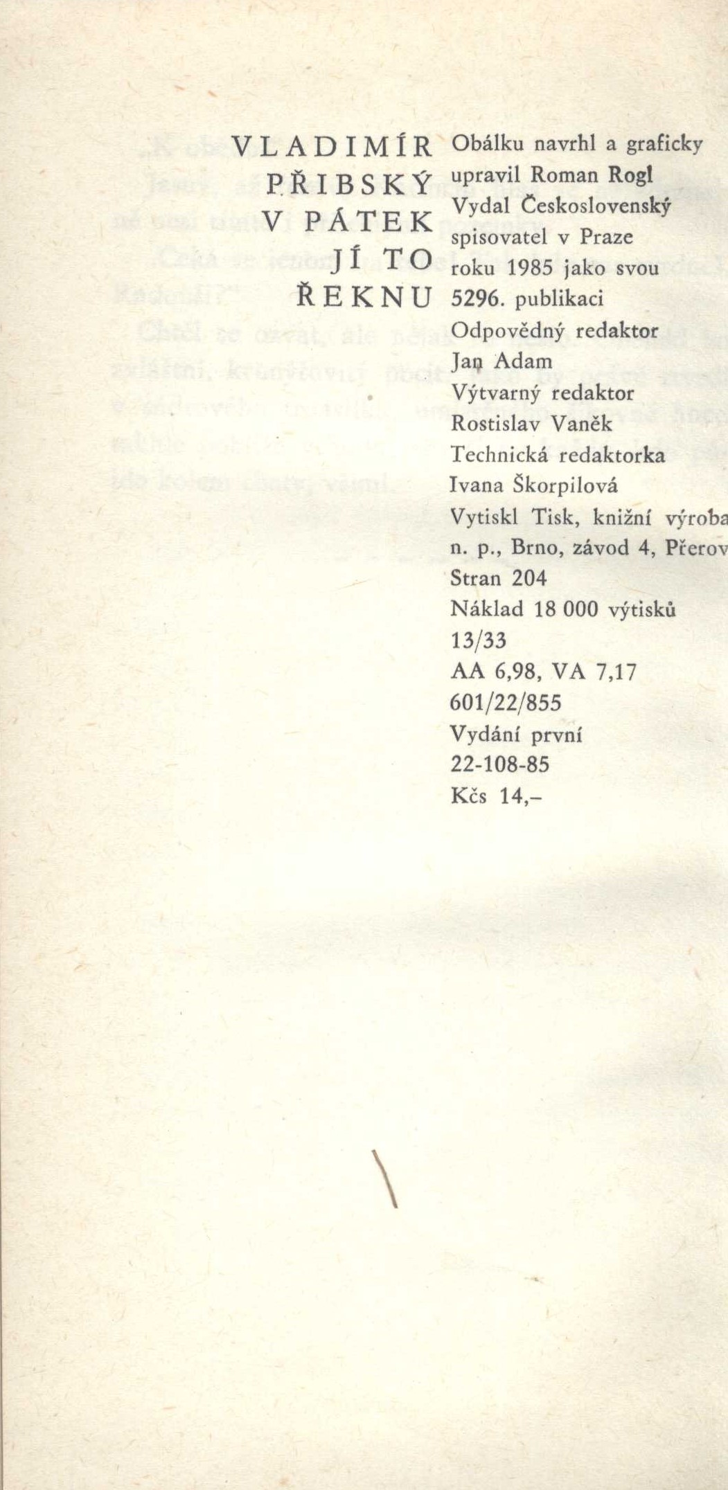 1. Title informationV pátek jí to řeknu / Vladimír Přibský