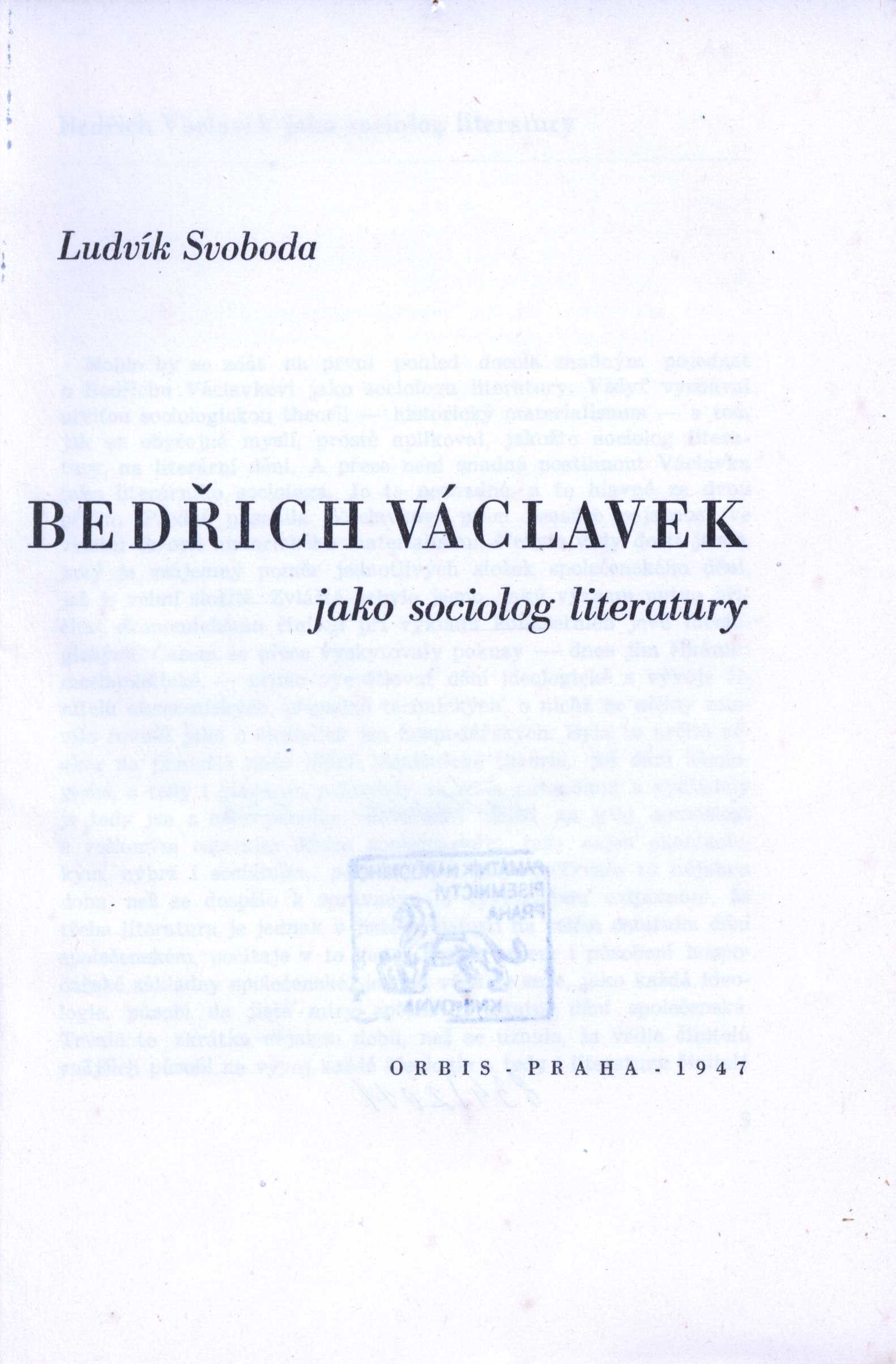 Názvové údaje Bedřich Václavek jako sociolog literatury : [přednáška konaná 4. března 1947 v "Literárně-historiské společnosti" v Praze v předvečer 4. výročí Václavkova skonu] / Ludvík Svoboda Osobní jméno Svoboda, Ludvík, 1903-1977 (Autor) Další autoři Orbis (nakladatelství a vydavatelství) (Nakladatel, vydavatel) Orbis (tiskárna) (Tiskař) Údaje o vydání 1. vyd. Nakladatel Praha : Orbis, 1947 Výrobce (Knihtiskárna Orbis) Rozsah 25 s. : front. ISBN brož. Edice Přednášky a diskuse sv. 10