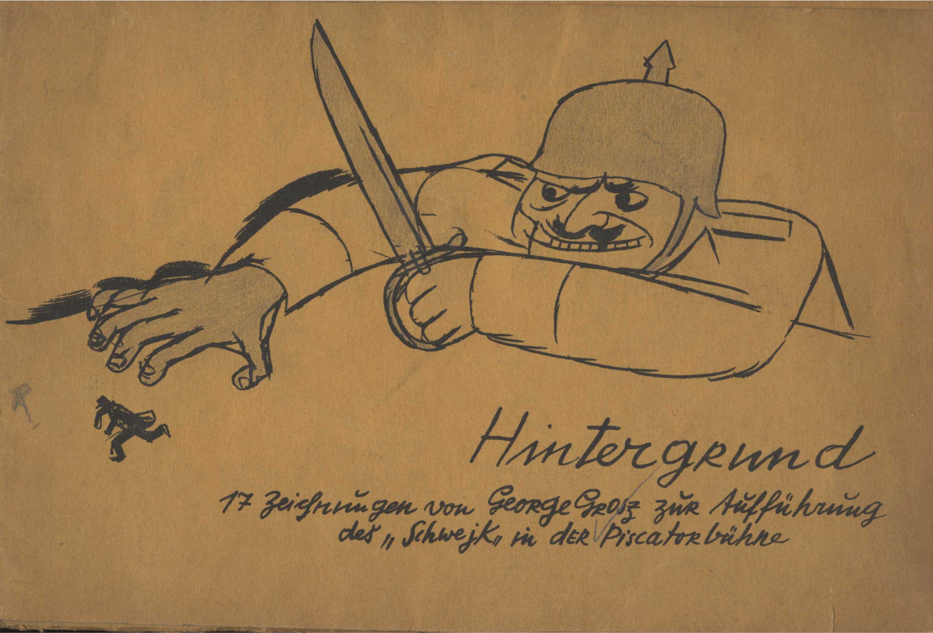 Title information Hintergrund : 17 Zeichnungen zur Aufführung des "Schwejk" in der Piscator-Bühne / George Grosz Personal name Grosz, George, 1893-1959 (Author) Další autoři Malik-Verlag (Berlin, Německo) (Publisher) Publication Berlin : Malik-Verlag, c1928 Scope 17 s. : il. Country Germany Language German Note Zdobená obálka. - Listy volně vloženy do obálky. - Celostránkové černobílé ilustrace.
