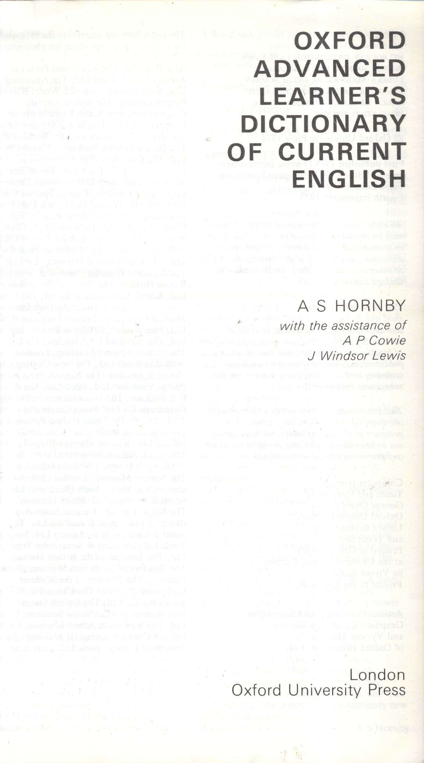 1. Title informationOxford Advanced Learner's Dictionary of Current English / A.S. Hornby ; with the assistance of A.P. Cowie, J. Windsor Lewis