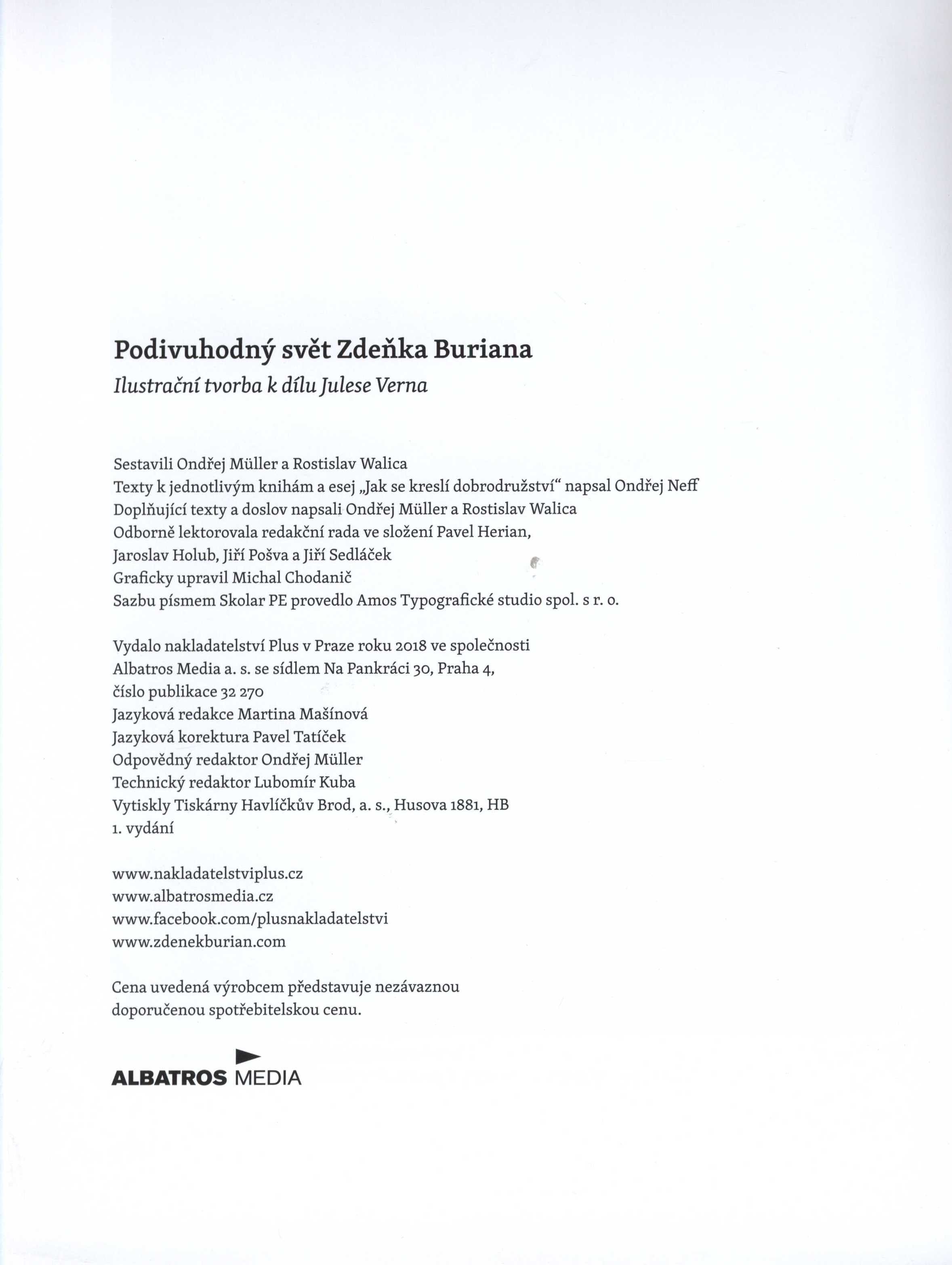 1. Title informationPodivuhodný svět Zdeňka Buriana : ilustrační tvorba k dílu Julese Verna / sestavili Ondřej Müller a Rostislav Walica ; texty a esej napsal Ondřej Neff ; doplňující texty a doslov napsali Ondřej Müller a Rostislav Walica ; graficky upravil Michal Chodanič