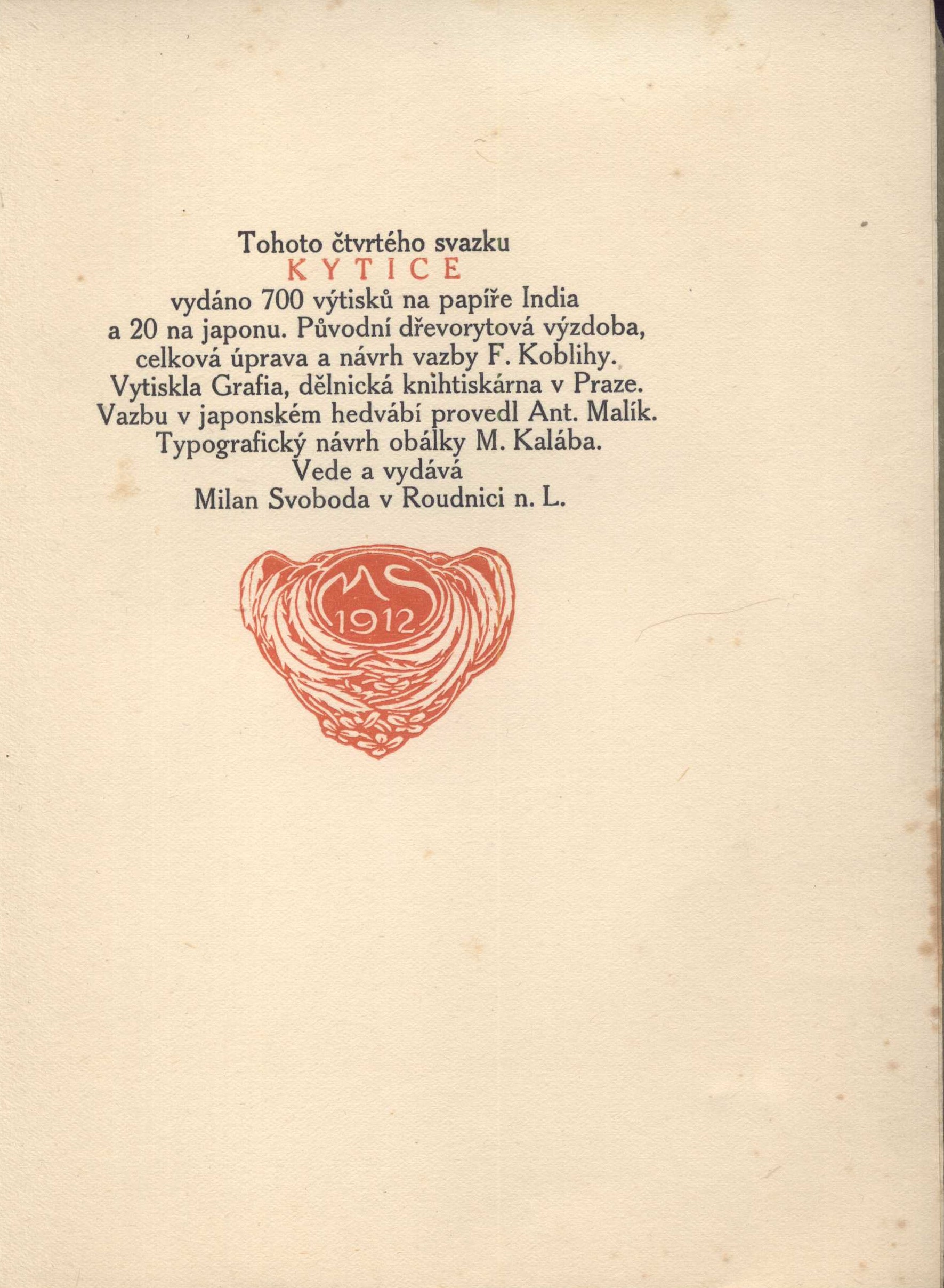 Vazbu některých výtisků do japonského hedvábí provedl Ant. Malík