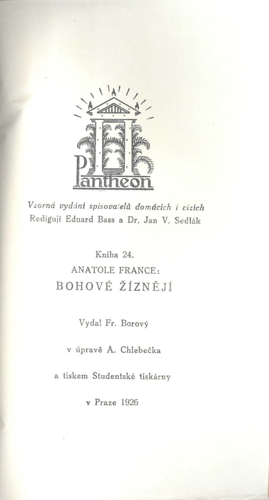 Pantheon, vzorná vydání spisovatelů domácích i cizích, (Fr. Borový) Spisy, Anatole France, (Fr. Borový)
