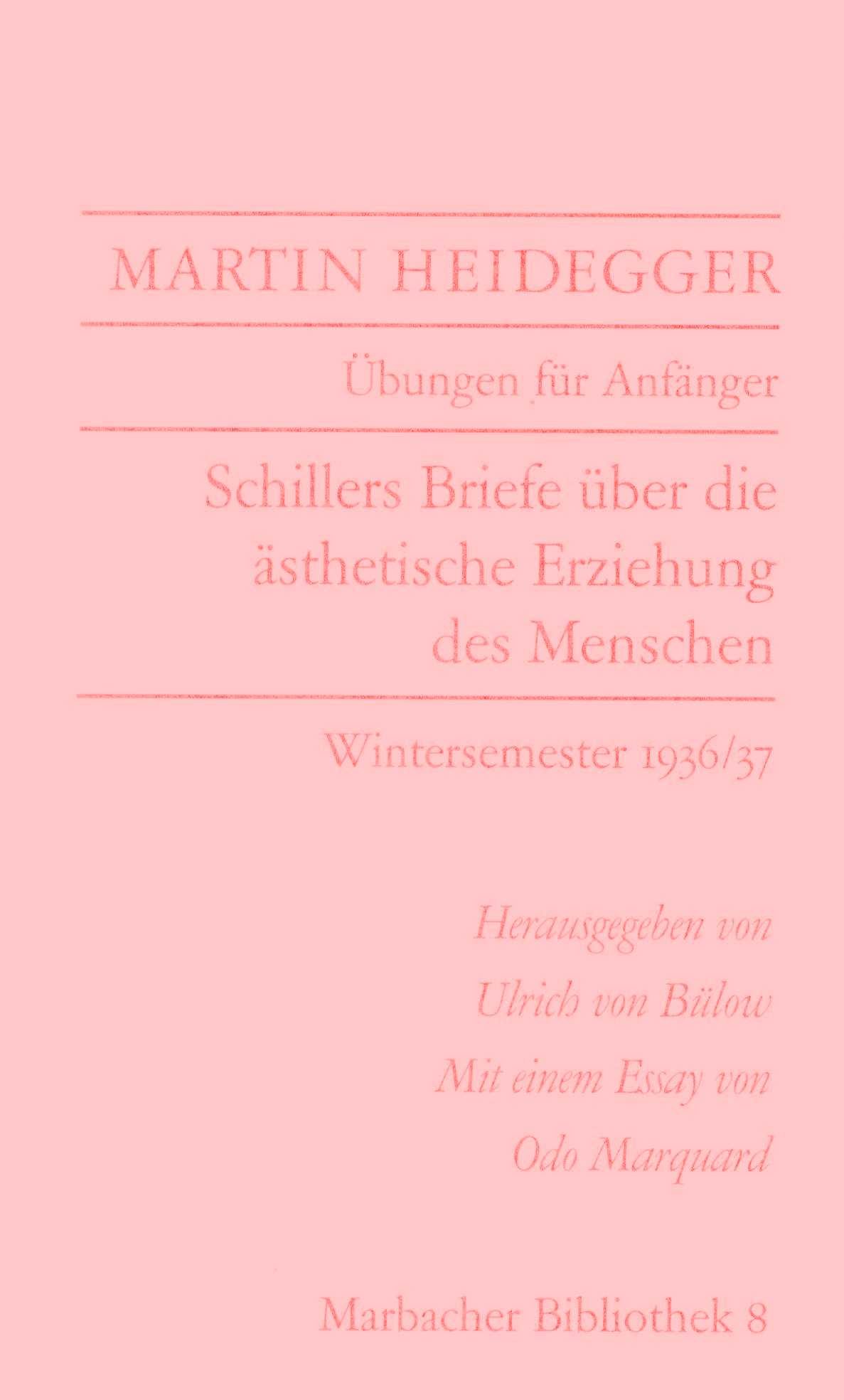 1. Title informationÜbungen für Anfänger : Schillers Briefe über die ästhetische Erziehung des Menschen : Wintersemester 1936/37 : Seminar-Mitschrift von Wilhelm Hallwachs / Martin Heidegger ; hrsgegeben von Ulrich von Bülow ; mit einem Essay von Odo Marquard