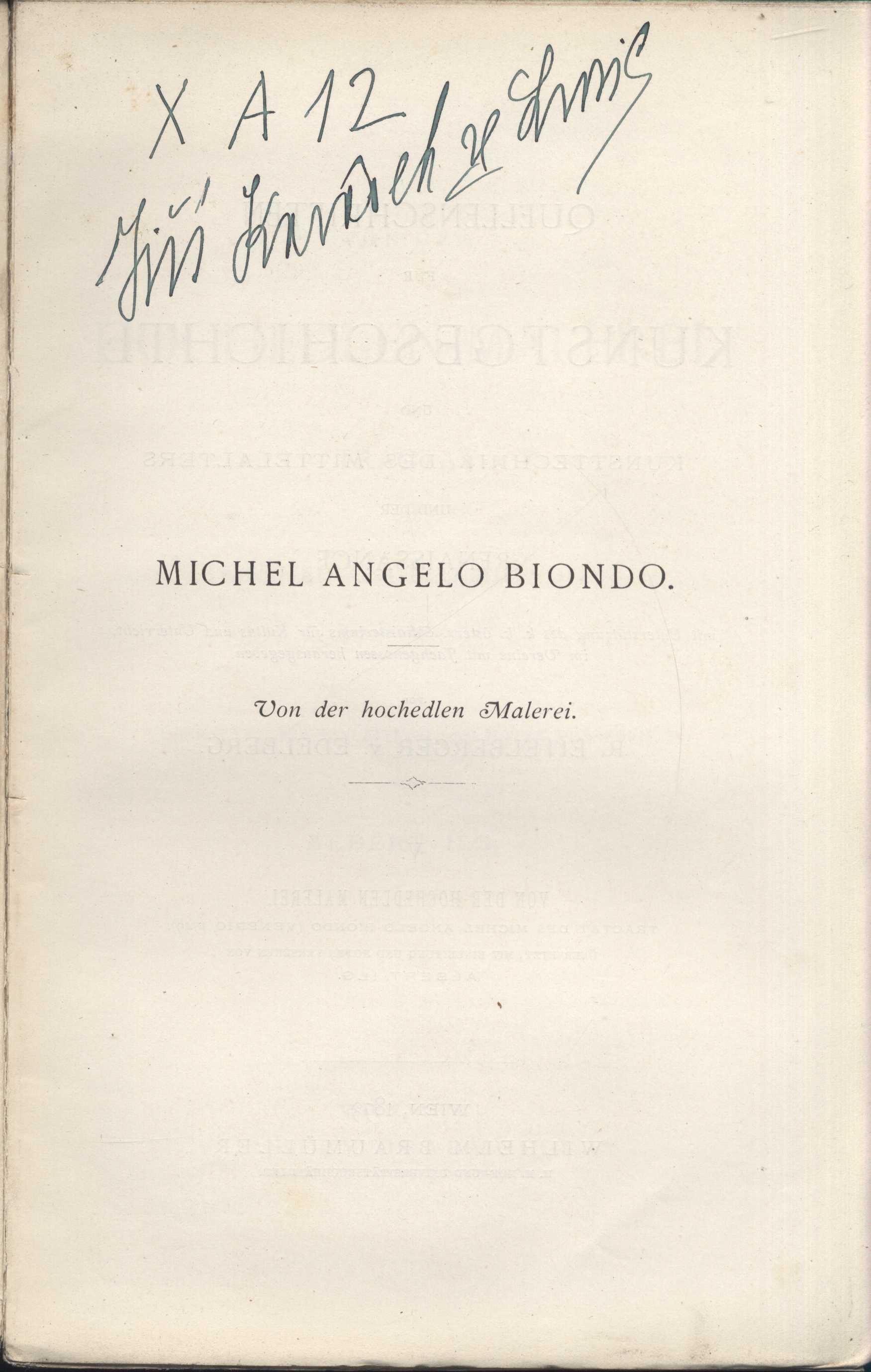 Quellenschriften für Kunstgeschichte und Kunsttechnik des Mittelalters und der Renaissance, (Wilhelm Braumüller)Country Austria Language German Language of the original Italian Note Klasická ediční obálka zdobená rámcem. - Nakladatelská reklama. - Rejstřík. - Poznámky. - Bibliografické údaje. - Úvod A. Ilga.