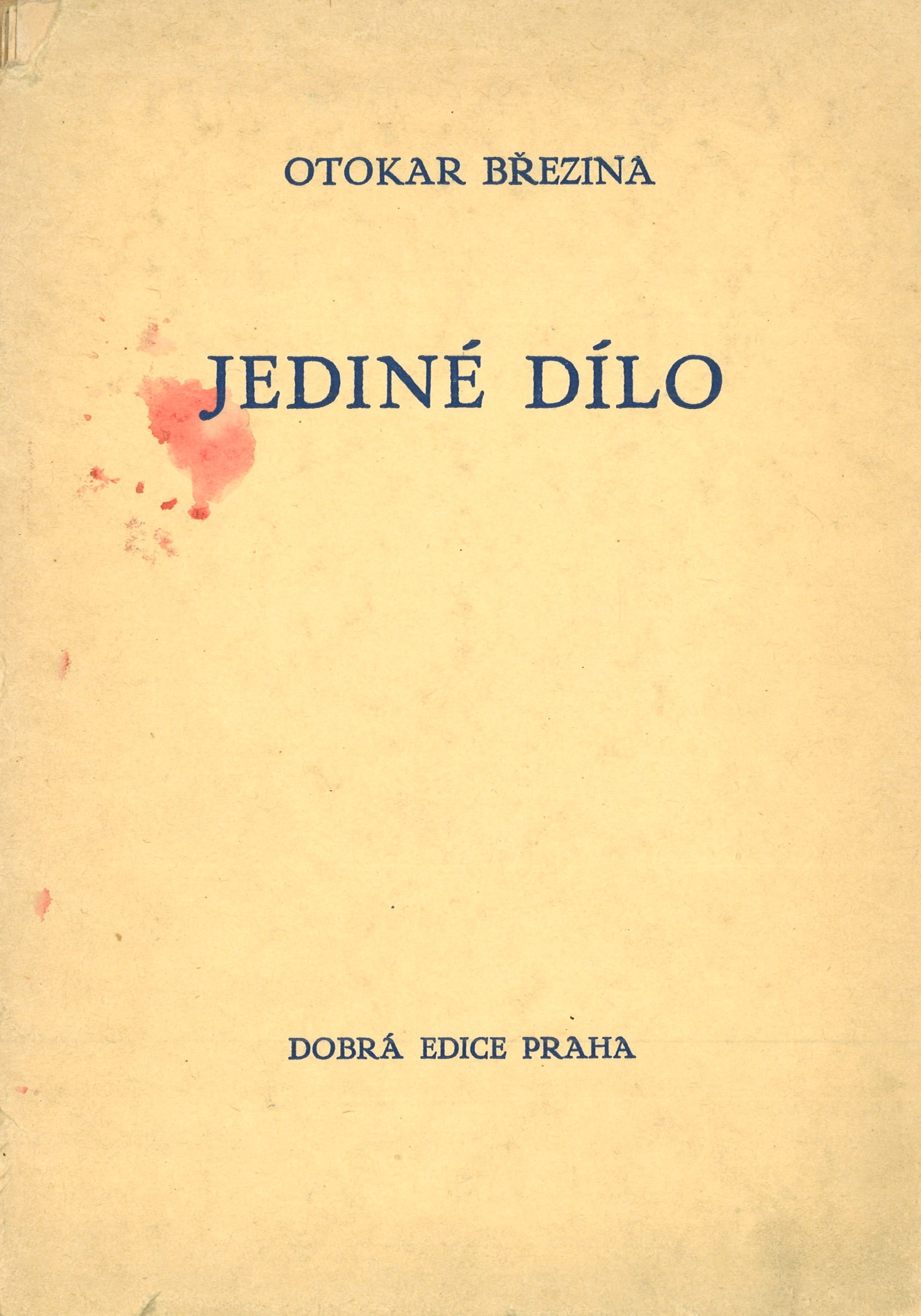 Title information Jediné dílo / Otokar Březina ; upravili Jiří Pak a Rudolf Burša Personal name Březina, Otokar, 1868-1929 (Author) (Dedicator) (Inscriber) Další autoři Pak, Jiří (Typographer) Burša, Rudolf (Typographer) Bělohlávek, Bedřich, 1902-1991 (Publisher) (Dedicatee) Corporation Legiografie (tiskárna) (Printer) Publication Praha : Bedřich Bělohlávek, 1928 Manufacture Vršovice : Legiografie Scope 14 nečíslovaných stran ; 25 cm ISBN (Brožováno) Edition Dobrá edice ; 13. svazek