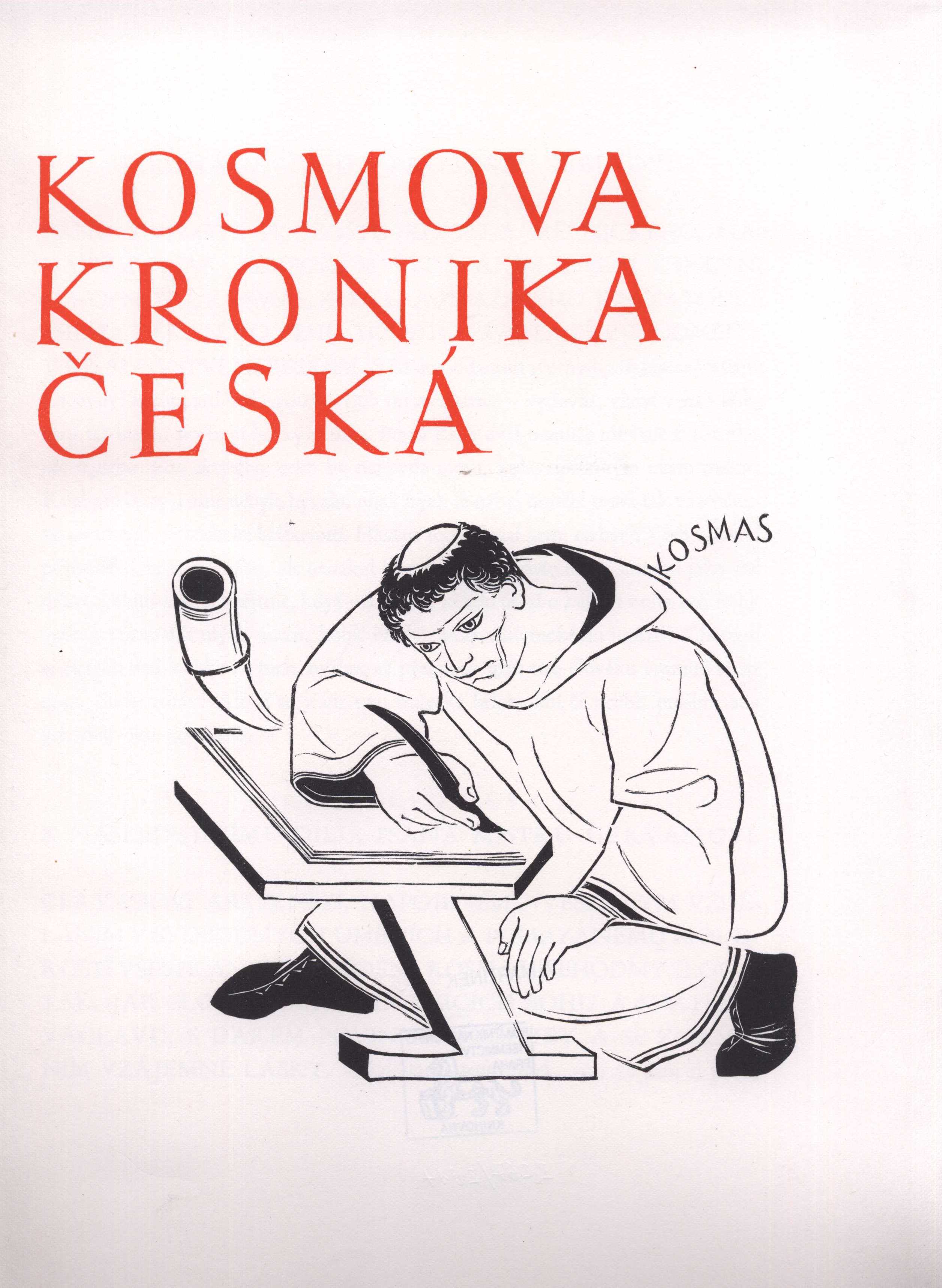 Title information Kosmova kronika česká / [z latiny přeložil Karel Hrdina ; grafická úprava, iniciály, dřevoryty od Karla Svolinského] Author Kosmas, asi 1045-1125 (Author) Další autoři Hrdina, Karel, 1882-1949 (Translator) Svolinský, Karel, 1896-1986 (Book designer) (Illustrator) (Bookjacket designer) Corporation Melantrich (nakladatelství) (Publisher) Publication Praha : Melantrich, 1929 Scope 203 s. : il. ; 32 cm Country -cs Language Czech Note Ilustrovaný titulní list. - Předmluva. - Zdobené iniciály. - Černobílé dřevoryty. - Vysvětlivky. - Doslov. - Rodokmen Přemyslovců