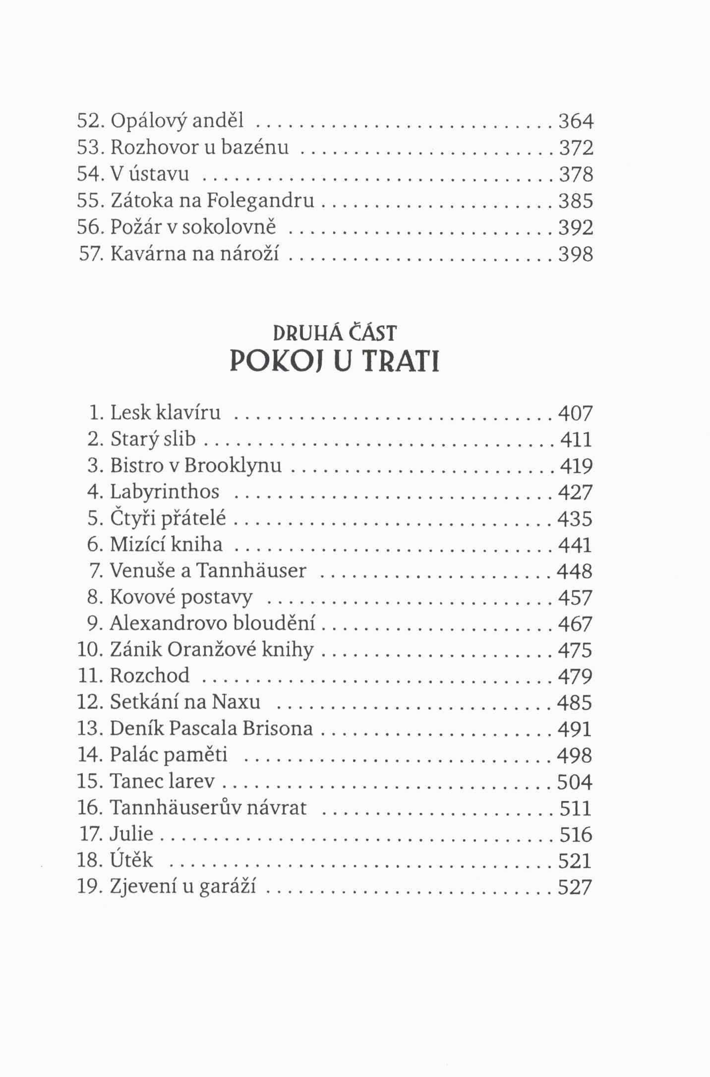 Annotation Hlavní hrdina, redaktor malého nakladatelství, nachází jednoho dne na skládce prapodivný předmět, jehož význam je odhodlán vypátrat. Děj románu se odehrává v roce 1999 v Praze. Vypravěč objeví na skládce na okraji města věc, jejíž účel nezná – je to nějaký nástroj, emblém, socha nebo snad písmeno neznámé abecedy? Ukáže se, že předmět je nějak spojen se záhadným zmizením mladé dívky. Hlavní hrdina po ní pátrá a zároveň se pokouší odhalit smysl neznámého předmětu, který by mohl vést k tajemství jejího zmizení. Na své cestě prochází různé prostory, naslouchá vyprávěním, která souvisejí s věcí i s dívkou. Tyto příběhy přenášejí čtenáře do různých míst – do New Yorku, do nepojmenovaného francouzského městečka, do horského střediska v Bavorských Alpách, na řecké ostrovy v Egejském moři, do Jižní Ameriky, do Afghánistánu. Ale stopy se stále nemohou spojit ve smysluplný celek… Document kind monografie Keywords česká próza * český román * detektivní román UDC 821.162.3-31 * (0:82-311.9) Uživatelské pole PNP Sign. R&AHamanovi 0230 - Knihovna R. a A. Hamanových. Call number Track No. Location Info C12b 7962 0120/2005 Sbírka C12b 8626 1705/2005 Fond R&AHamanovi 0230 1529/2011 Sbírka