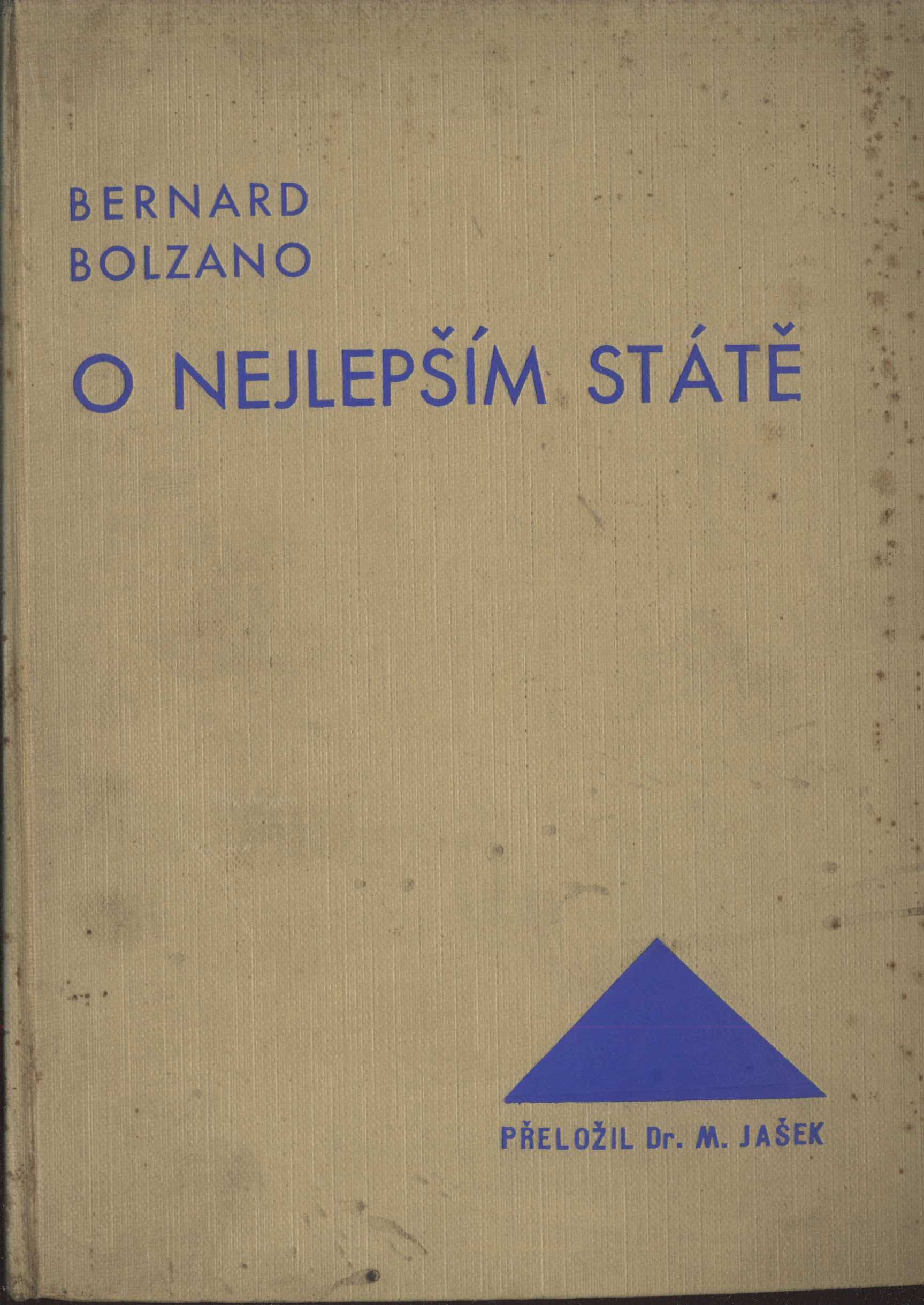 Title information O nejlepším státě / Bernard Bolzano ; k 150. výročí narození spisovatelova z rukopisu přeložil Dr. Mart. Jašek ; [grafickou úpravu prohlédl prof. Dr. Jindř. Čadík] Personal name Bolzano, Bernard, 1781-1848 (Author) Další autoři Jašek, Martin, 1879-1945 (Translator) (Author of introduction) Čadík, Jindřich, 1891-1979 (Graphic technician) Seifert, Augustin, 1873-1955 (Former owner) (Dedicator) Jašek, Martin, 1879-1945 (Publisher) Corporation M. Jašek (Plzeň (Česko)) (Publisher) Grafické závody Neuber, Pour a spol. (Printer) Památník národního písemnictví. Karáskova galerie (Dedicatee) Publication V Plzni : M. Jašek, 1934 Manufacture (Grafické závody Neuber, Pour a spol.) Scope xli, 348 s., [9] l. obr. příl. : il. ISBN (váz.) Country Czech Republic Language Czech Language of the original German Note Zdobená vazba s tiskem na hřbetě. - Tištěná dedikace. - Předmluva M. Jaška. - Osm listů obrazové přílohy s reprodukcemi a faksimilemi. - Poznámky, doplňky, doklady. - Doslov. - Seznam věcný a seznam jmen od prof. F. Šípové-Volcové. - Chyby tiskové.