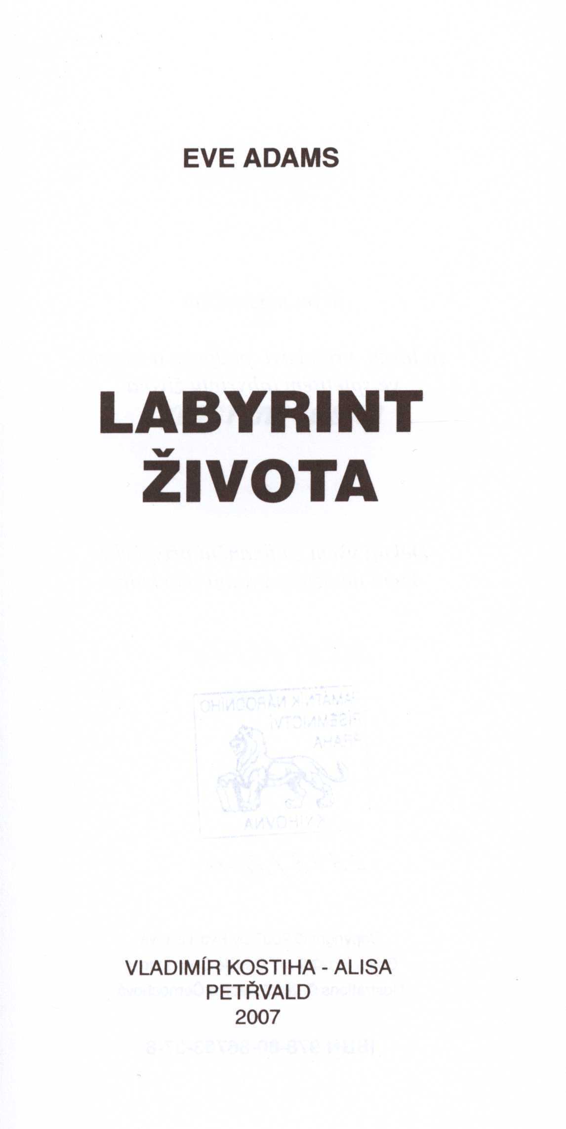 Title information Labyrint života / Eve Adams ; [obálka a ilustrace Cecílie Černochová] Personal name Adams, Eve, 1957- (Author) Další autoři Černochová, Cecílie (Bookjacket designer) (Illustrator) Edition statement Vyd. 1. Publication Petřvald : Vladimír Kostiha - Alisa, 2007 Manufacture Printo) Scope 119 s. : il. ; 22 cm ISBN 978-80-86763-37-8 (brož.) Edition Básníci třetího tisíciletí 24