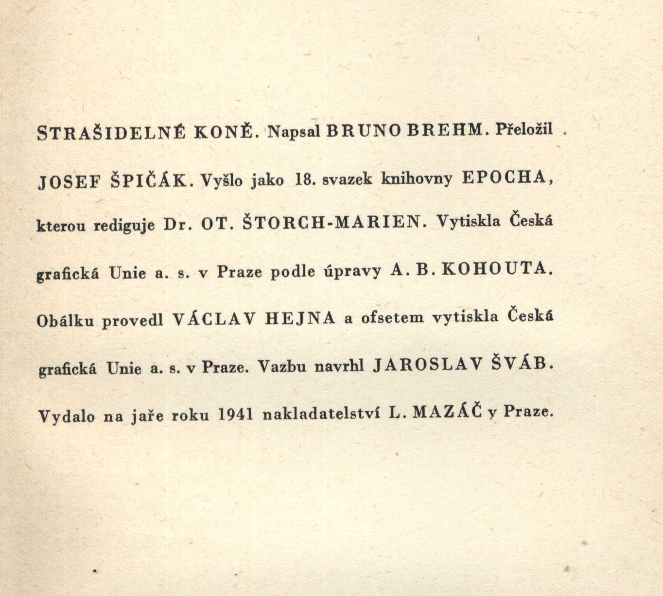 Epocha, (L. Mazáč)Country Czech Republic Language Czech Language of the original German Note Barevná ilustrace na obálce. - Ediční značka. - Nakladatelská značka na titulním listu.