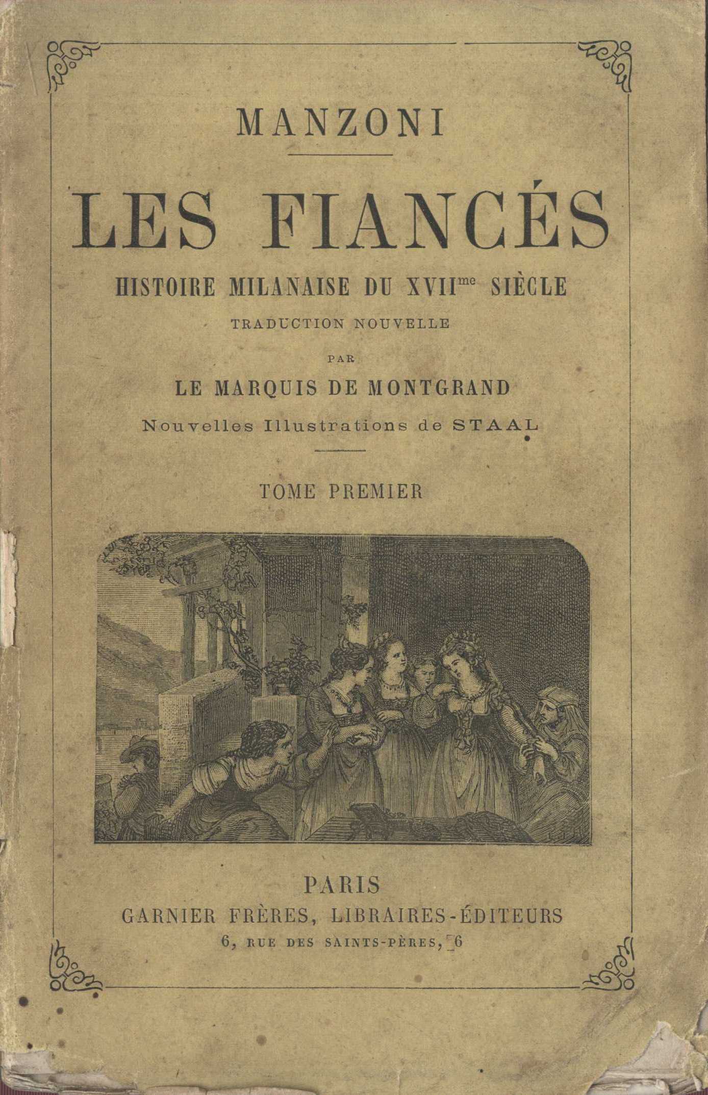 1. Title informationLes fiancés : histoire milanaise du XVIIme siècle / Manzoni ; traduction nouvelle sur la dernière édition illustrée, revue et publiée a Milan sous les yeux de l'auteur par le marquis de Montgrand avec des notes historiques et fac-simile de lettres de Manzoni a son traducteur ; nouvelles illustrations de Staal. tome premier
