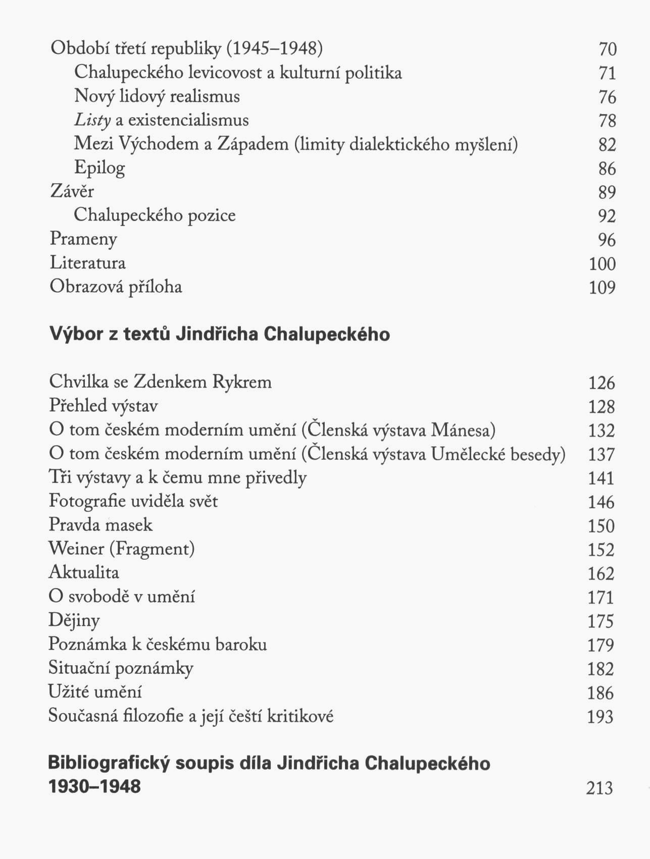 Skrytá moderna, (Akropolis)Country Czech Republic Language Czech Note Zdobená vazba. - Titulní list. - Úvod. - Poznámky pod čarou. - Prameny a literatura. - Barevná obrazová příloha. - Výbor z textů J. CH. - Černobílé fotografie. - Bibliografický soupis díla J. CH. 1930-1948. - Ediční poznámka. - Cizojazyčná resumé. - Jmenný rejstřík. - Obsah. - Tiráž