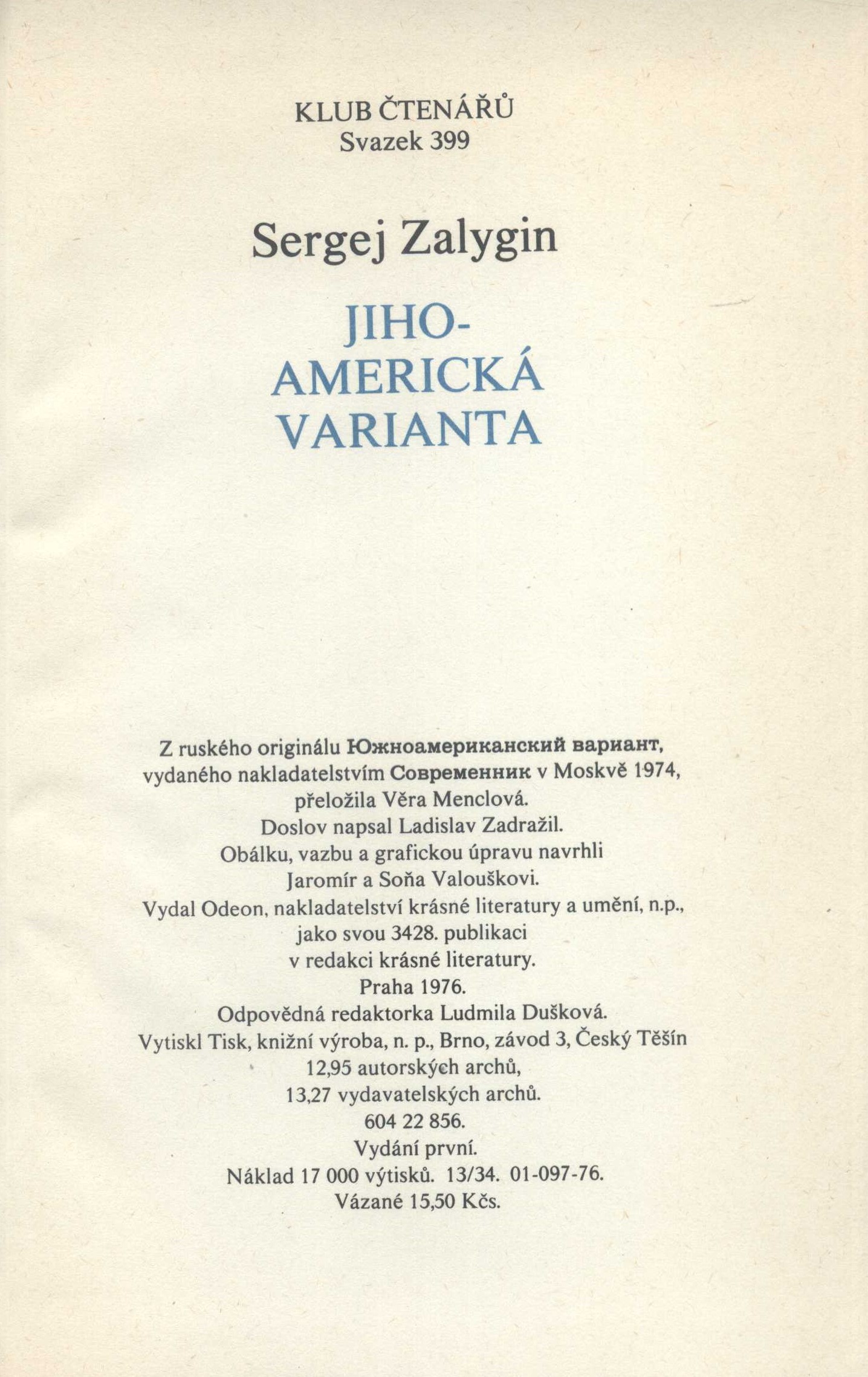 Klub čtenářů, (Odeon)Country Czech Republic Language Czech Language of the original Russian Note Doslov napsal Jaroslav Zadražil
