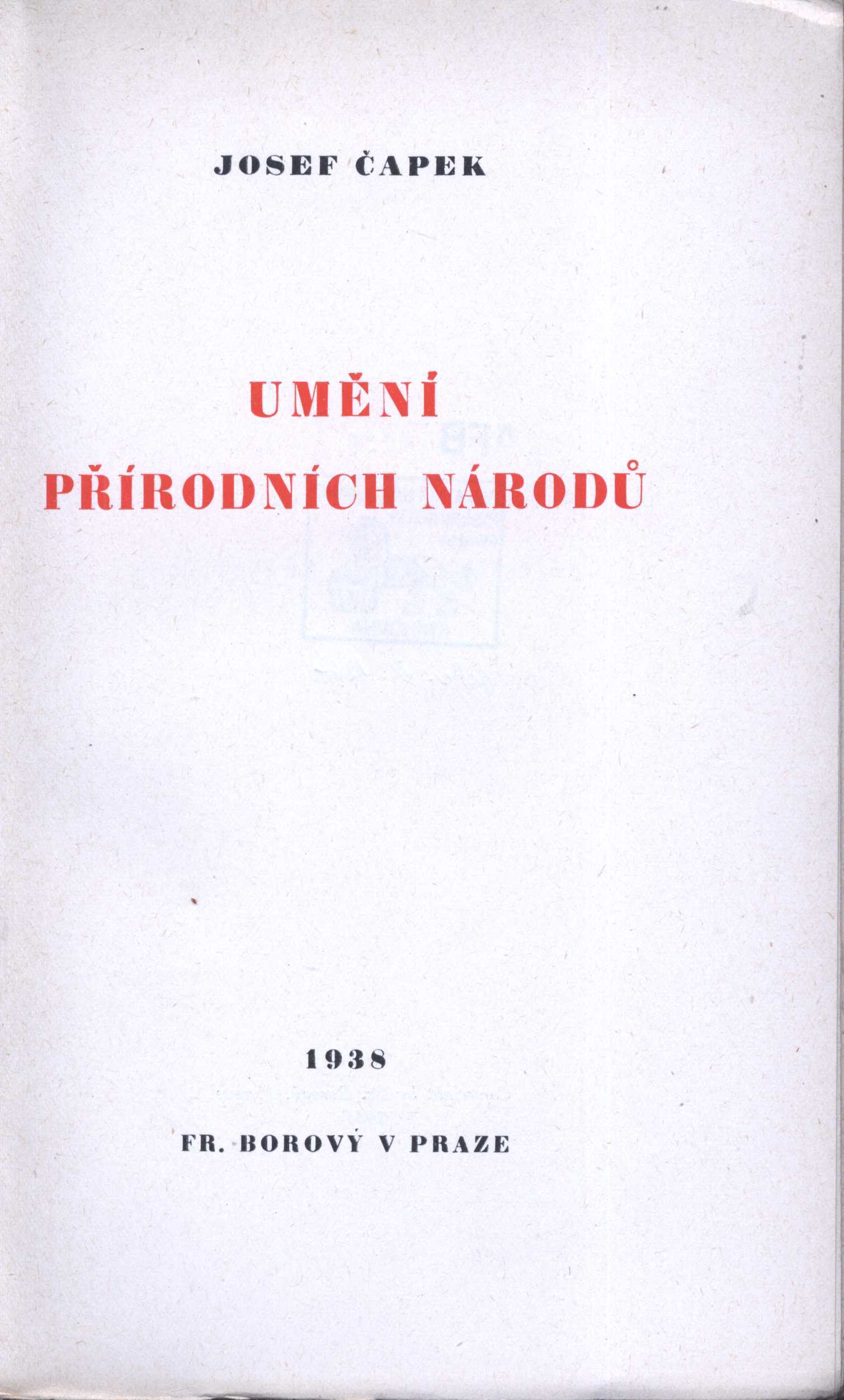 Title information Umění přírodních národů / Josef Čapek ; [obálka a vazba dle návrhu Fr. Muziky] Personal name Čapek, Josef, 1887-1945 (Author) Další autoři Muzika, František, 1900-1974 (Bookjacket designer) Corporation Fr. Borový (firma) (Publisher) Akciová moravská knihtiskárna Polygrafie (Printer) Publication V Praze : Fr. Borový, 1938 Scope 324, XXXII s. obr. příl. : il. ISBN brož. Edition Stezky. dokumenty estetického tvoření sv. 3