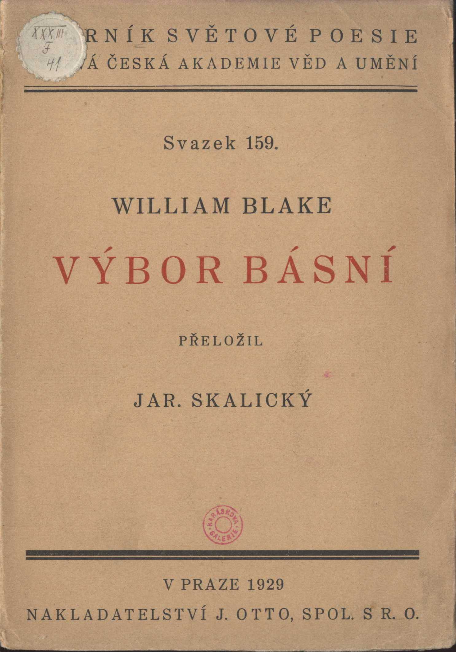 1. Title informationVýbor básní / William Blake ; přeložil Jar. Skalický