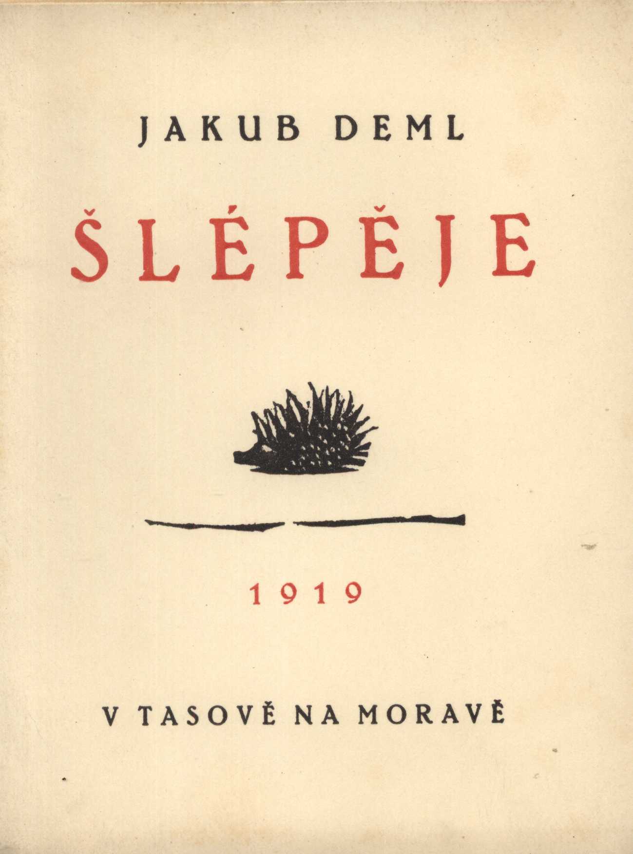 Title information Šlépěje. [Třetí svazek] / Jakub Deml Personal name Deml, Jakub, 1878-1961 (Author) (Publisher) Další autoři J. Skalák a spol. (Praha) (Printer) Publication V Tasově na Moravě : [J. Deml], 1919 Manufacture J. Skalák a spol.) Scope 107 s., [7] obr. příl. : il. ISBN brož. Country Czech Republic Language Czech Note Dvoubarevný černý a červený tisk na obálce a titulním listu s drobnými kresbami. - Frontispis. - Ilustrace různých autorů na přílohách. - Černobílé drobné kresby a vignety v textu.