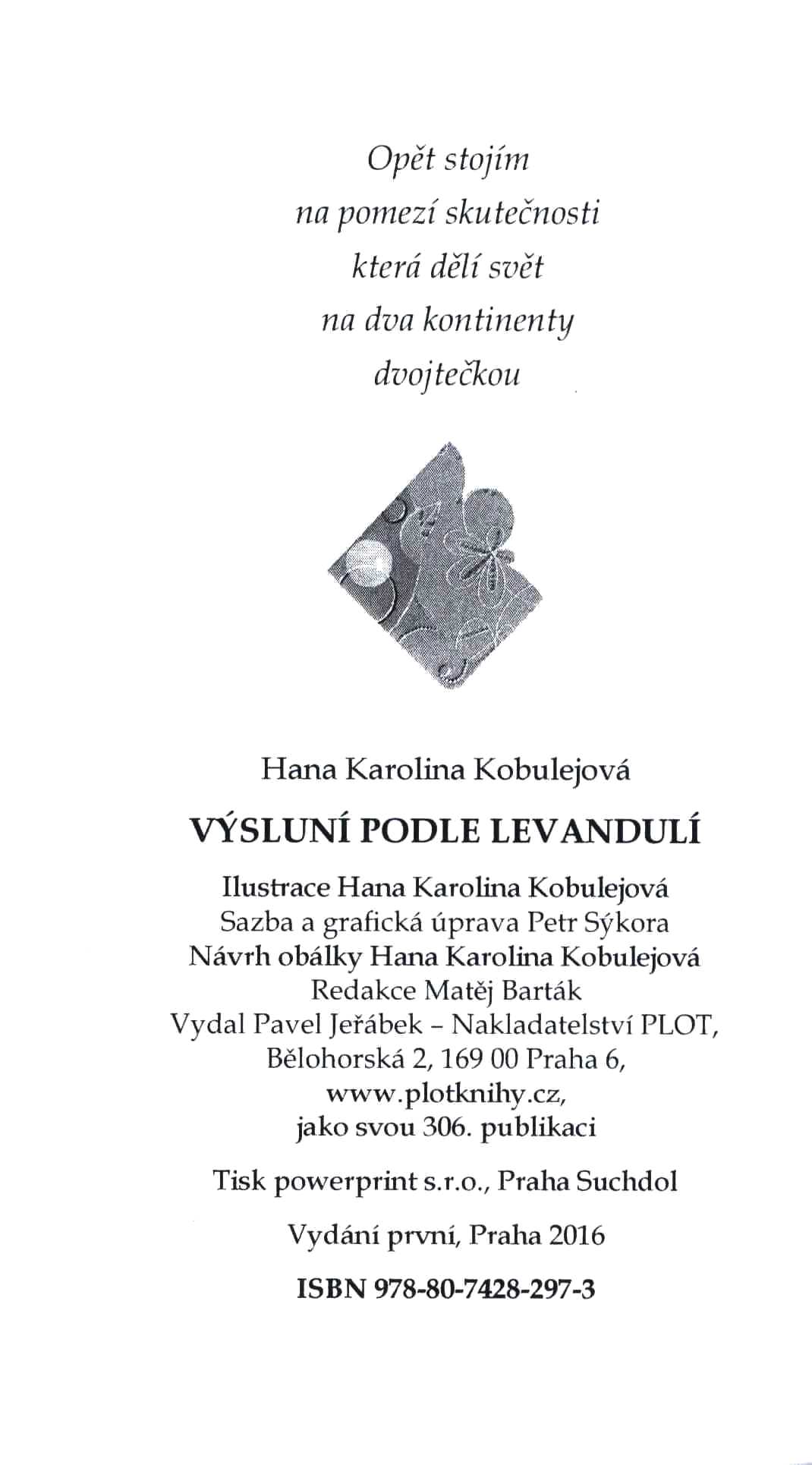 Title information Výsluní podle levandulí / Hana Karolina Kobulejová ; ilustrace Hana Karolina Kobulejová ; sazba a grafická úprava Petr Sýkora ; návrh obálky Hana Karolina Kobulejová Personal name Kobulejová, Hana Karolina, 1985- (Author) (Illustrator) (Bookjacket designer) Další autoři Sýkora, Petr (Compositor) (Book designer) Corporation Nakladatelství Plot (Publisher) Powerprint (tiskárna) (Printer) Edition statement Vydání první Publication Praha : Plot, 2016 Manufacture Praha Suchdol : powerprint s.r.o. Scope 63 stran : ilustrace ; 17 cm ISBN 978-80-7428-297-3 (brožováno) Country Czech Republic Language Czech Note Zdobená barevná obálka. - Na záložkách obálky básně. - Zdobený patitul. - Motto na místě frontispisu. - Upoutávky na knihy na rubu titulního listu. - Prolog od M. Aurelia. - Černobílé ilustrace. - Obsah.