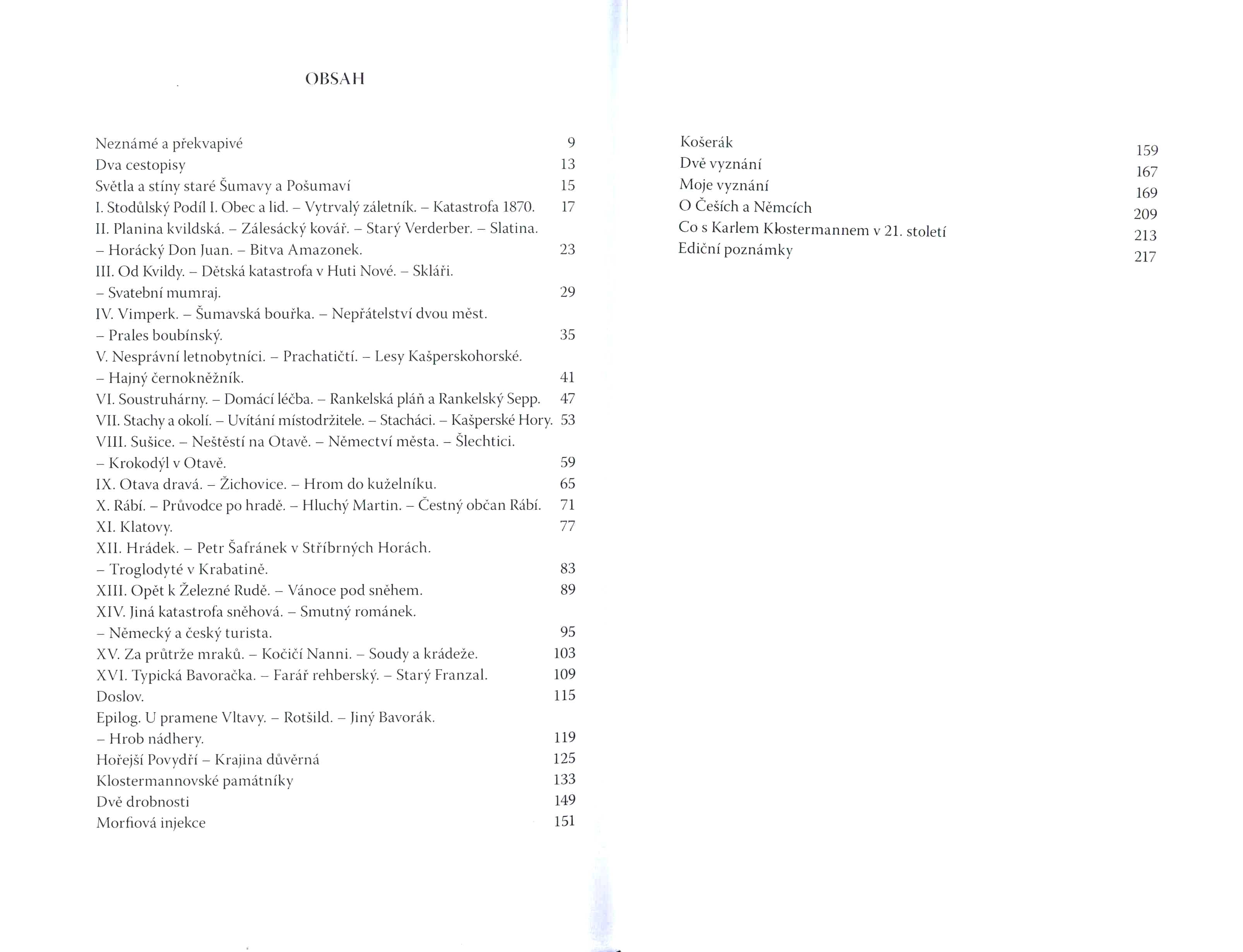 Title information Vzpomínky na Šumavu IV : zapomenuté zápisky / Karel Klostermann ; editor: Ondřej Fibich ; na obálce foto Ivany Řandové ; grafická úprava a sazba: Kolář & Kutálek Personal name Klostermann, Karel, 1848-1923 (Author) Další autoři Fibich, Ondřej, 1954- (Editor) (Author of introduction) (Author of afterword, colophon, etc.) Řandová, Ivana, 1965- (Photographer) Corporation Kolář & Kutálek (grafické studio) (Book designer) (Compositor) Fibich Ondřej - Nakladatelství Hrad Strakonice (Publisher) Těšínské papírny, s.r.o. (tiskárna) (Printer) Edition statement Vydání první a čtvrté Publication Strakonice : Nakladatelství Antýgl, 2018 Manufacture Český Těšín : Těšínské papírny s. r. o. Scope 219 stran : ilustrace, erby, portréty, faksimile ; 22 cm ISBN 978-80-88002-19-2 (brožováno) Country Czech Republic Language Czech Language of the original German Note Částečně přeloženo z němčiny. - Obálka s barevnou fotografií krajiny a černobílým portrétem K.Klostermanna, černý text. - Na přední záložce černobílé foto K. Klostermanna a jeho stručná biografie a bibliografie, na zadní černobílé foto M. Regala a jeho stručná biografie a bibliografie. - Iniciály K. Klostermanna na vakátě. - Věnování. - Patitul. - Frontispis. - Poděkování. - Úvod editora "Neznámé a překvapivé". - Černobílé celostránkové ilustrace, erby, faksimile, fotografie s popisky. - Doslov "Co s Karlem Klostermannem v 21. století" od editora. - Ediční poznámky. - Obsah. - Upoutávkyna knihy, inzerce. - Barevné foto a iniciály KK na zadní straně obálky.