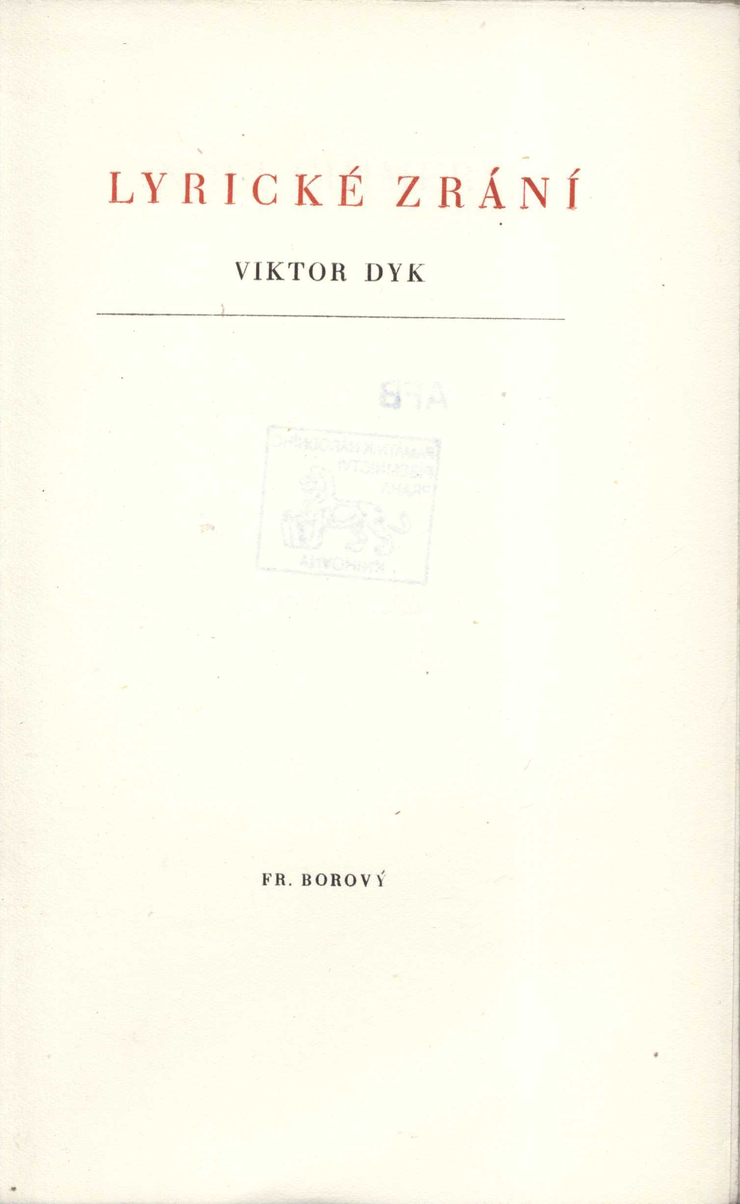 1. Title informationLyrické zrání / Viktor Dyk ; [graf. upr. a obálku navrhl Jaroslav Hrubý]