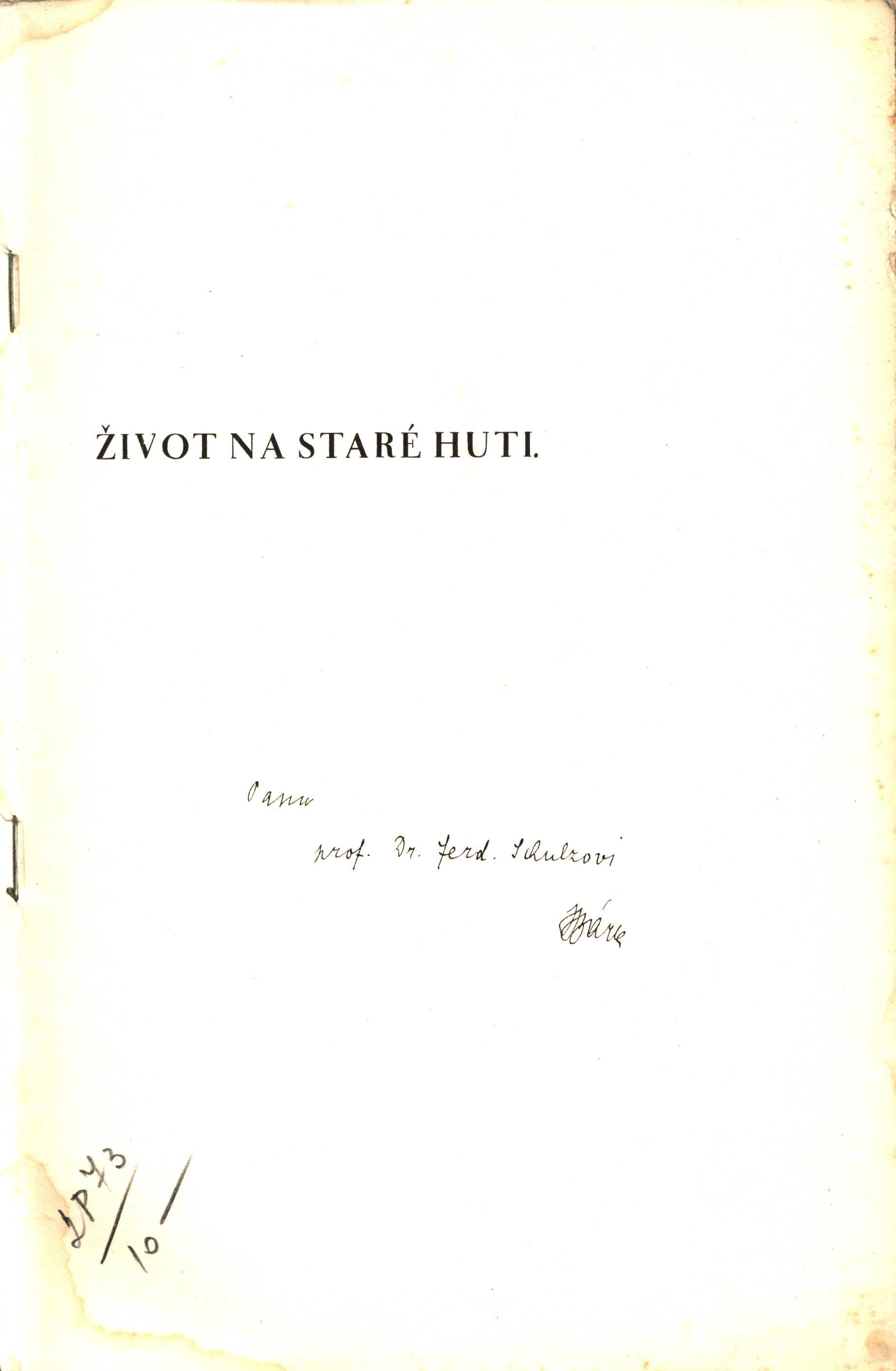 $a Život na staré huti / $c napsal Jan Bárta ; autor doslovu Bedřich Mendl ; obálka podle návrhu Ladislava Sutnara 264 -1