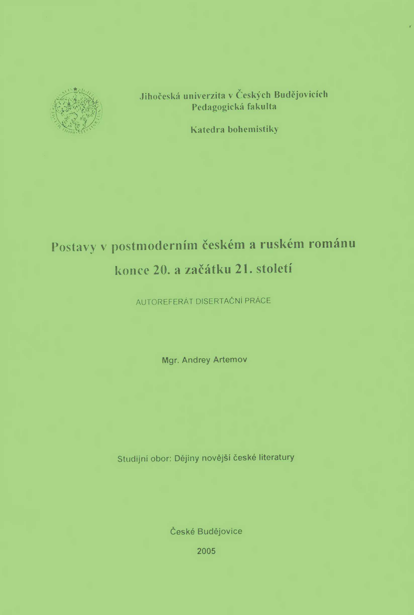 Postavy v postmoderním českém a ruském románu konce 20. a začátku 21.století
