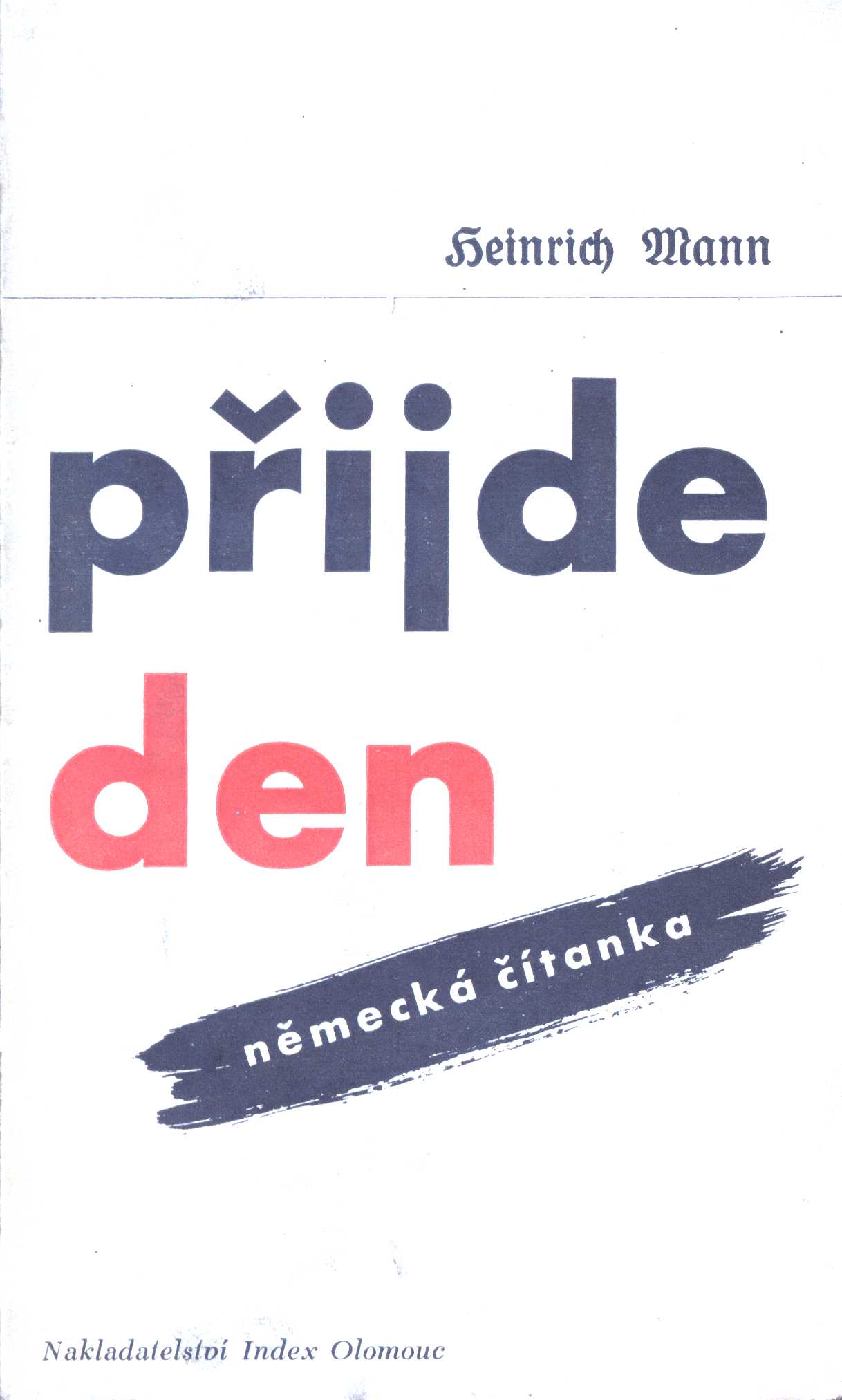 Title information Přijde den : německá čítanka / Heinrich Mann ; [předmluvu napsala Marie Pujmanová ; knihu přeložil Bedřich Václavek, verše Jiří Taufer ; v úpravě Zd. Rossmanna] Personal name Mann, Heinrich, 1871-1950 (Author) Další autoři Pujmanová, Marie, 1893-1958 (Author of introduction) Václavek, Bedřich, 1897-1943 (Translator) Taufer, Jiří, 1911-1986 (Translator) Rossmann, Zdeněk, 1905-1984 (Book designer) Corporation Index (Olomouc) (Publisher) Publication Olomouc : Index, 1937 Manufacture Typia) Scope 190 s. ; 8° ISBN brož. Country Czech Republic Language Czech Language of the original German Note Na zál. obálky poznámka o knize a přehled knih nakladatelství. -- Poznámky.