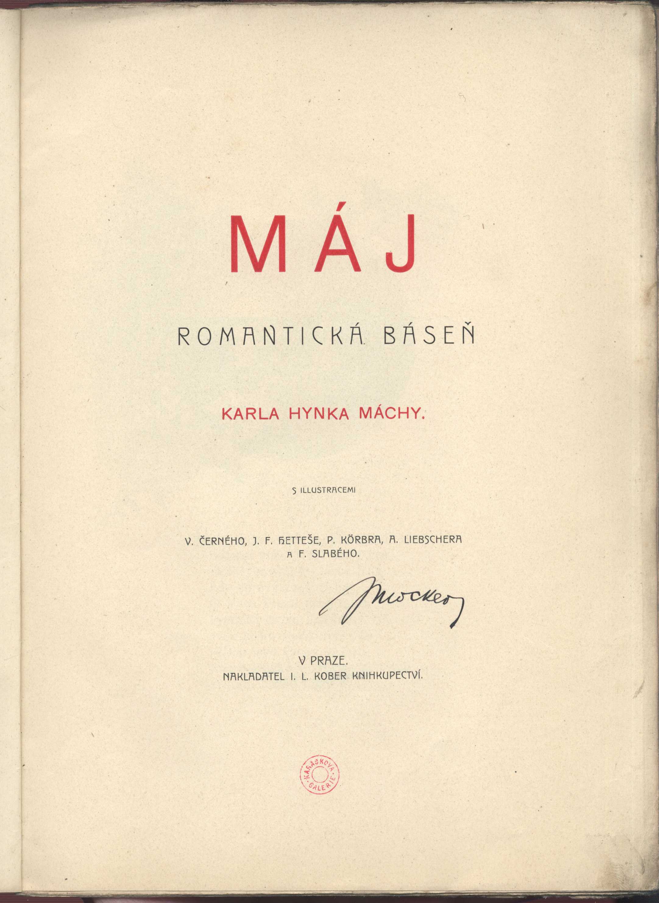 $a Máj / $c romantická báseň Karla Hynka Máchy ; s illustracemi V. Černého, J. F. Hetteše, P. Körbra, A. Liebschera a F. Slabého 264 -1