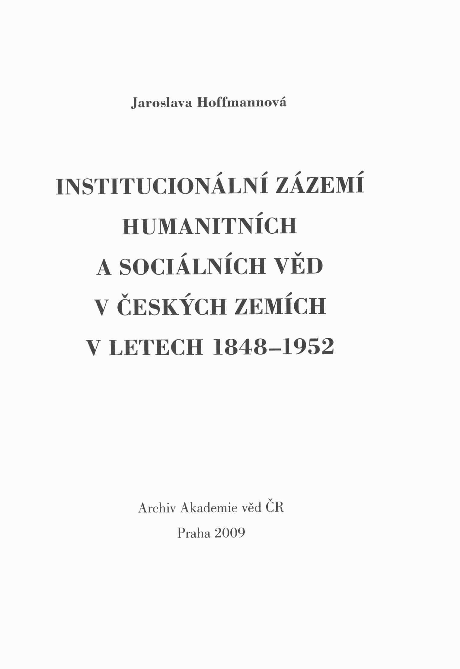 Institucionální zázemí humanitních a sociálních věd v českých zemích v letech 1848-1952