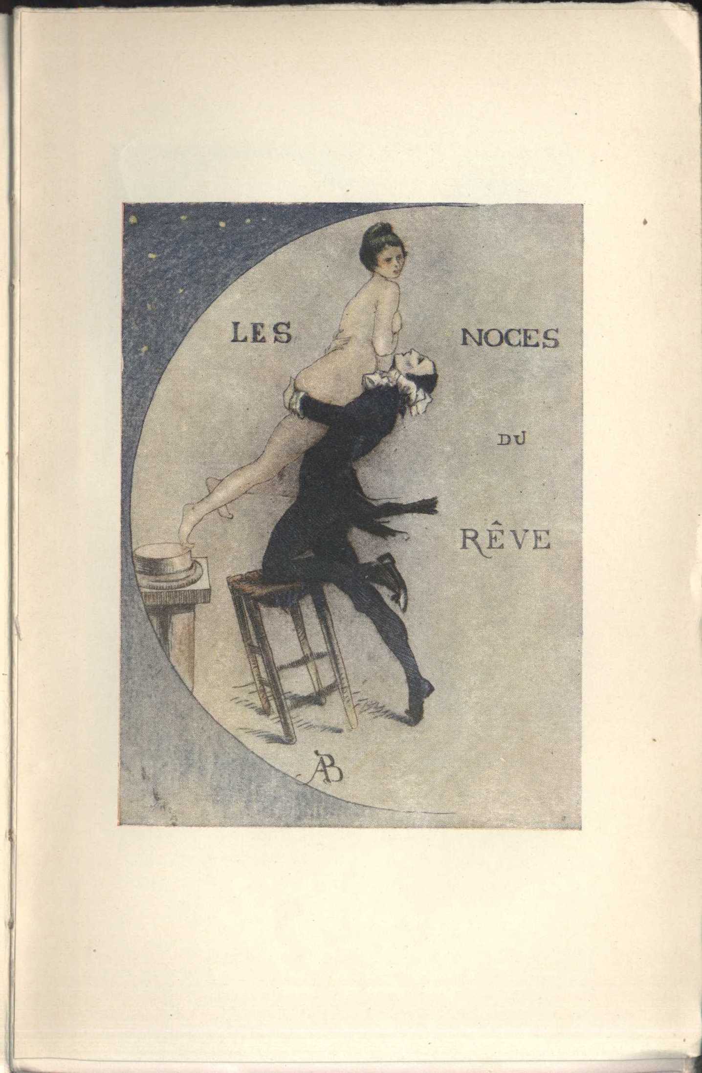 Note Barevná zdobená obálka (Jaquelux). - Informace o dalších dílech autora. - V rámci nákladu tři přednostní výtisky ("papier pur fil" z papíren Lafuma). - Ilustrovaný titulní list (motivem z obálky). - Mezi stranami 96 a 97 je vbrožováno "interlude" odtéhož autora "Les noces du rêve: baller en deux actes", opatřené vlastní barevnou obálkou (zdobenou kresbami Chimota a Lorenziho) a tištěné na křídovém papíře, o rozsahu sedmdesáti šesti stran (včetně obálky a vlepovaných příloh). - Příloha tištěná modře a ilustrovaná množstvím ilustrací v textu od Jaqueluxe a rovněž čtyřmi vlepenými barevnými obrazovými přílohami Alberta Besnarda.