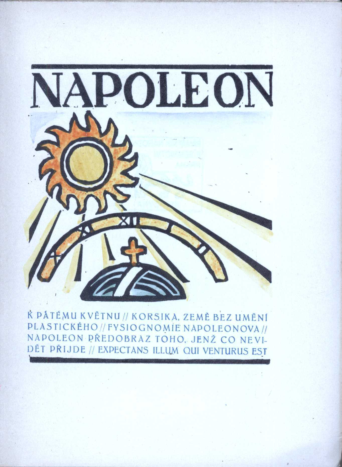 Napoleon : K pátému květnu, Korsika, země bez umění plastického, Fysiognomie Napoleonova, Napoleon předobraz toho, jenž co nevidět přijde, Expectans illum qui venturus est / [z různých knih vybral Josef Florian]. -- Ve Staré Říši na Moravě : Marta Florianová, 1926 (v Mor. Budějovicích :. -- Viktor Dvořák). -- (Kurs ; [sv.] 17). -- Zdobená obálka. - Soupis vydaných Kursů od června 1922 do května 1926. - Na frontispise značka edice. - Barevný titulní list. - Poznámky pod čarou. - Každá část má vlastní stránkování. -- Cover title: Kurs Napoleonský. -- ISBN : brož.