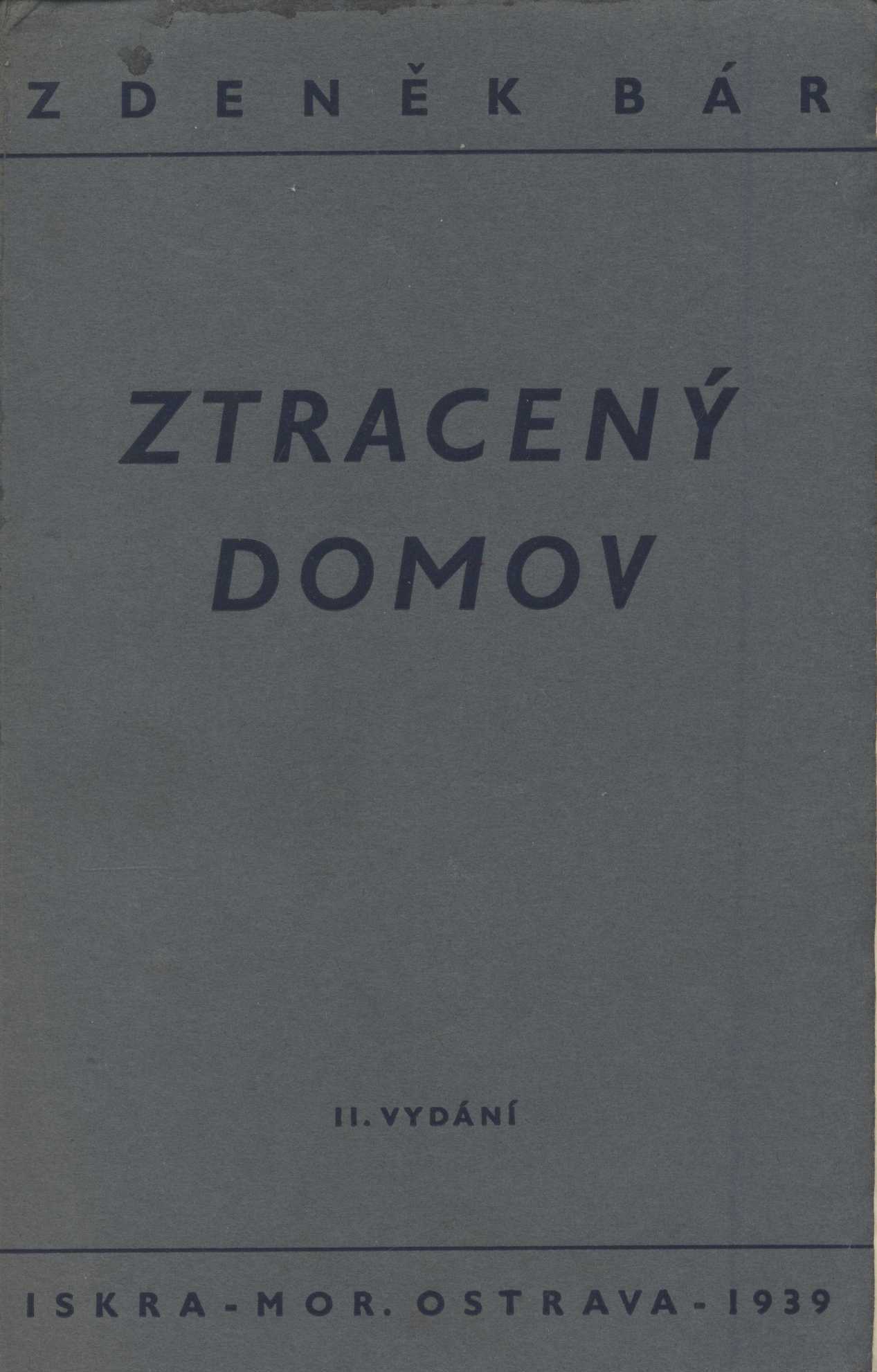 Title information Ztracený domov : prózy z černého kraje / Zdeněk Bár ; [s předmluvou Vojtěcha Martínka] Personal name Bár, Zdeněk, 1904-1980 (Author) Další autoři Martínek, Vojtěch, 1887-1960 (Author of introduction) Corporation Iskra (nakladatelství) (Publisher) Melantrich (nakladatelství : 1910-1950) (Printer) Edition statement 2. vyd. Publication Mor. Ostrava : Iskra, 1939 Manufacture Vytiskla tiskárna Melantrich) Scope 87 s. ISBN brož. Country Czech Republic Language Czech Note Zdobená obálka. - Obsah. - Seznam knih vydaných Iskrou. - Seznam knih, které napsal autor.