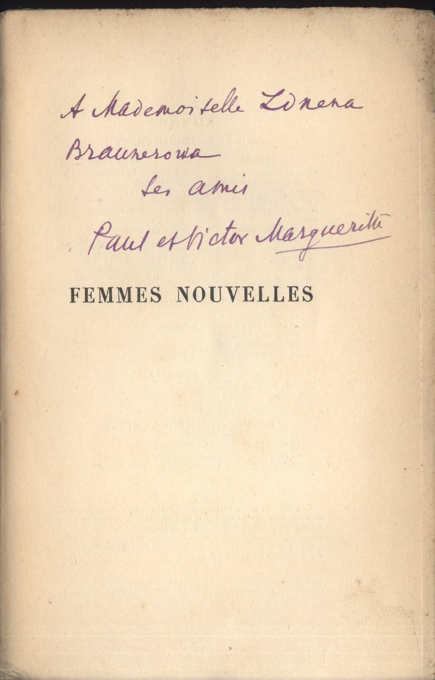 Title information Femmes nouvelles / Paul et Victor Margueritte Personal name Margueritte, Paul, 1860-1918 (Author) (Dedicator) Další autoři Margueritte, Victor, 1866-1942 (Author) (Dedicator) Braunerová, Zdenka, 1858-1934 (Dedicatee) (Former owner) Corporation Librairie Plon. Les petit-fils de Plon et Nourrit (Paris, Francie) (Publisher) Publication Paris : Librairie Plon, [189-] Scope 349 s. ISBN brož. Country France Language French Note Na obálce a na titulním listu nakladatelský signet. - Informace o dalších dílech autorů. - Nakladatelská reklama.